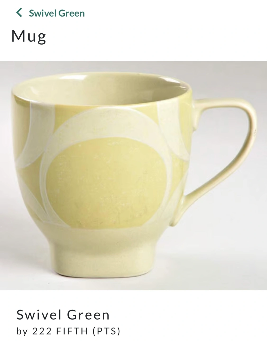 Buy & Sell222 Fifth Swivel Green Mug222 Fifth Swivel Green MugFree222 Fifth Swivel Green mug. Pale green colour. White and grey oval and circle pattern. Excellent condition. Set of dishes 4 of each type #freecycleConditionLike newWHERE TO MEETQueen BroadviewView MapSELLERverifiedPatrickS Riverdale801 review1 chats·0 favorites·26 viewsSEND CHAT TO SELLERHi Patrick! I’m interested in your listing.Hi Patrick! I’m interested in your listing.Get the Karrot app to chatSign In to chat