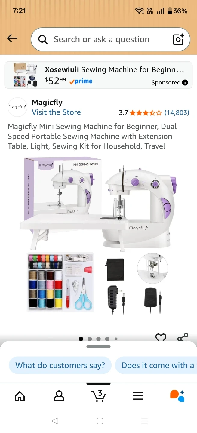 This Magicfly mini sewing machine is designed for beginners. It's portable and comes with an extension table and a sewing kit. Includes various thread colours and accessories. New in box