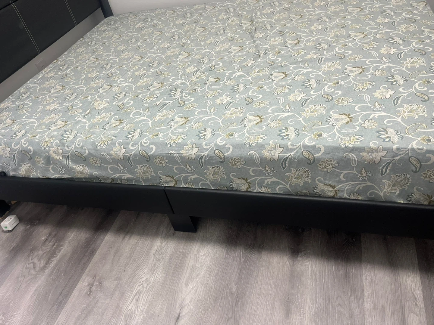 Selling a queen size bed frame with 10 inches of mattress. It's black and in great condition. Perfect for any bedroom!