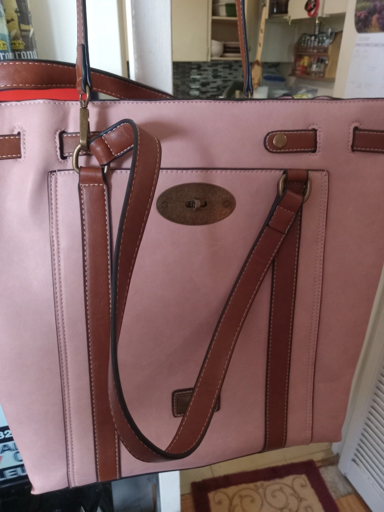 A lovely Stone & Co. tote bag in a beautiful pink colour! The bag features brown accents and a spacious interior, perfect for carrying all your essentials. It's in great condition and ready for a new home, Simply Noelle bag