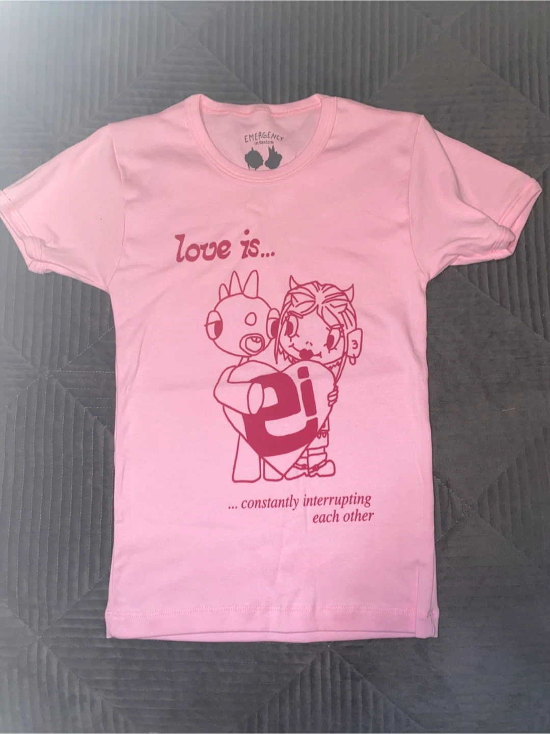 This Emergency Intercom Podcast t-shirt is pink with a graphic print. Size is X-Small. NEVER WORN. Accidentally ordered two.