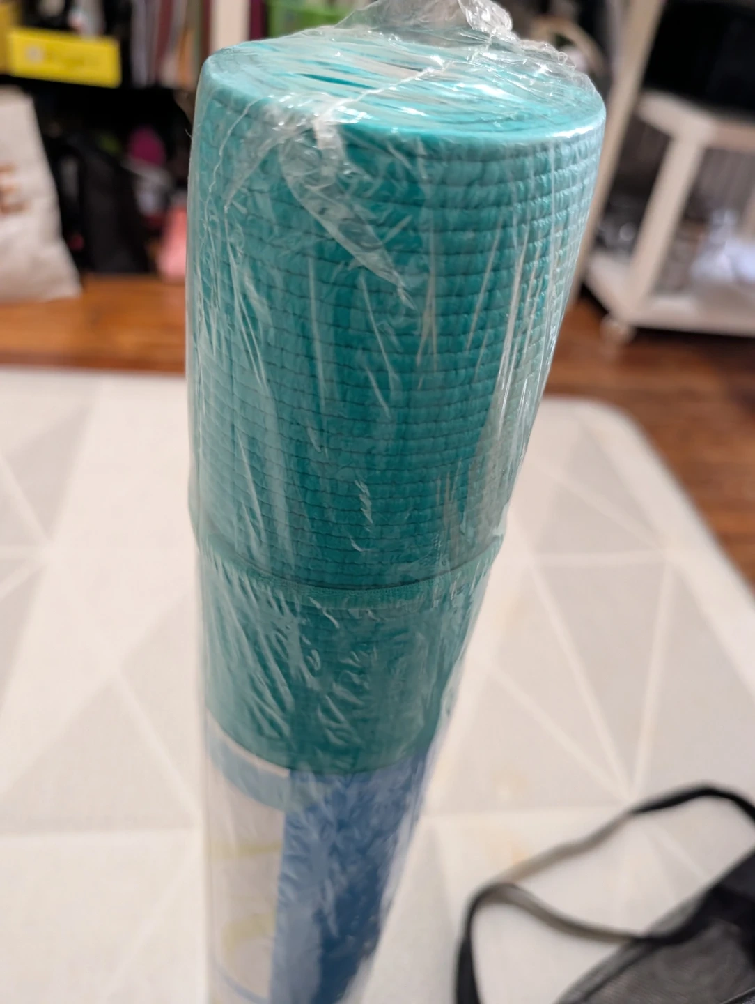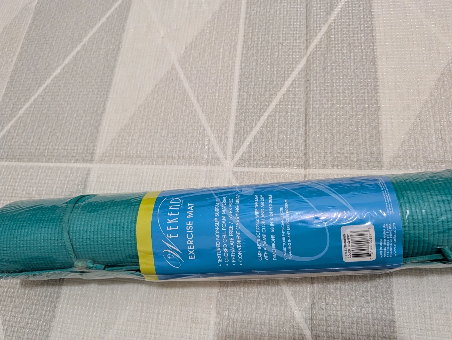 Textured non-slip surface exercise mat. It's made from phthalate-free, latex-free, closed-cell foam material. Comes with a convenient carrying strap. Dimensions are 24 in x 71 in x 3mm.š„
