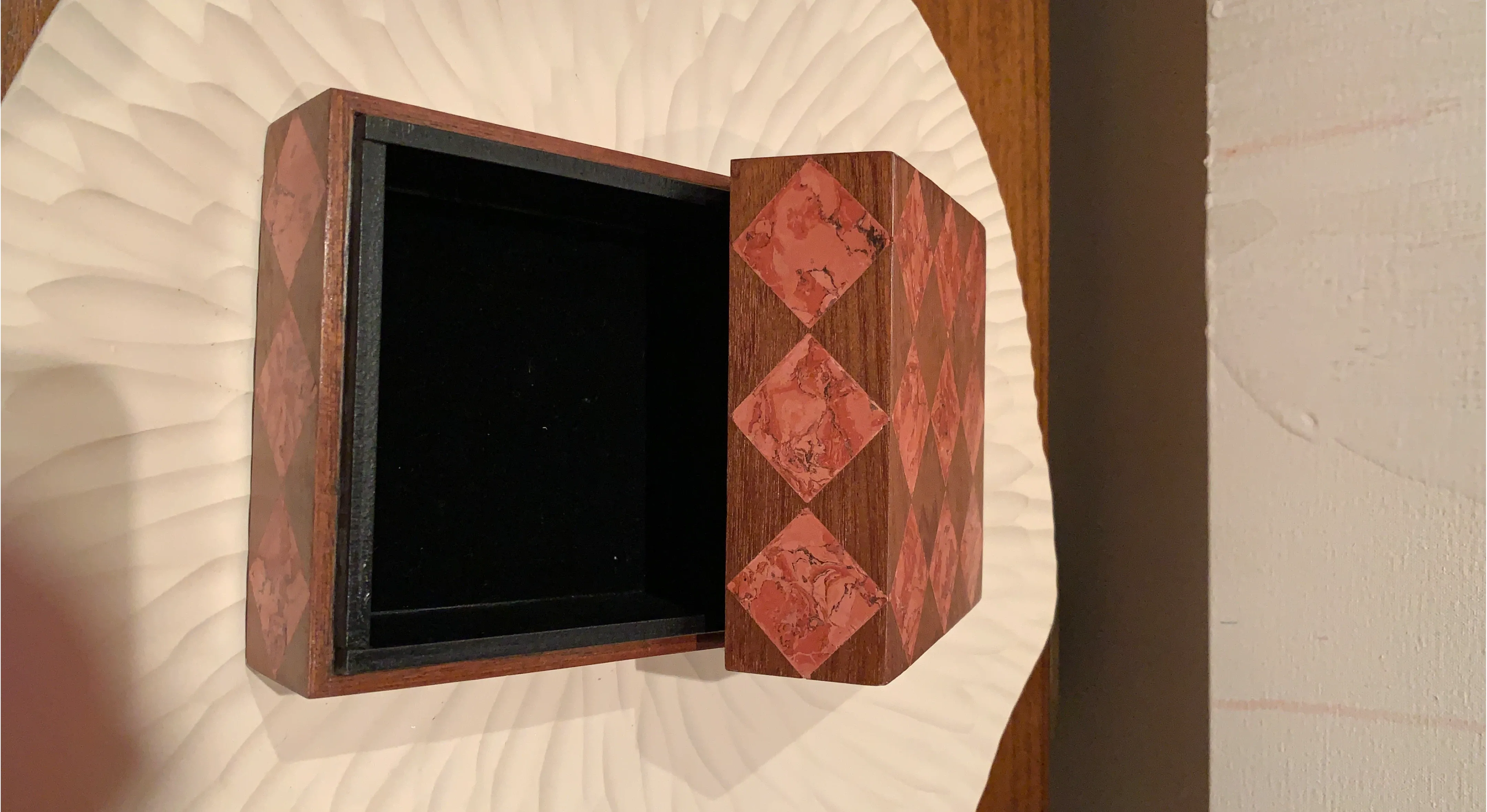 Buy & SellDecorative Wooden Jewelry BoxDecorative Wooden Jewelry Box$24Decorative wooden box with a diamond inlay pattern. Features a black velvet lining inside.ConditionLike newWHERE TO MEET10021View MapSELLERBPUpper East Side100 reviews0 chats·1 favorites·35 viewsSEND CHAT TO SELLERHi BP! I’m interested in your listing.Hi BP! I’m interested in your listing.Get the Karrot app to chatSign In to chat