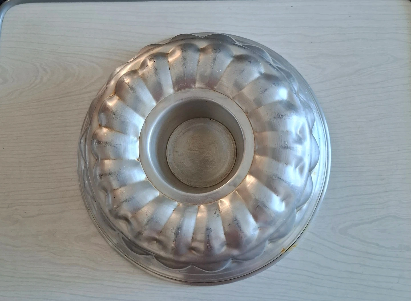 This is a bundt cake pan. It's made of aluminum with a fluted design. Perfect for baking your favourite cakes!