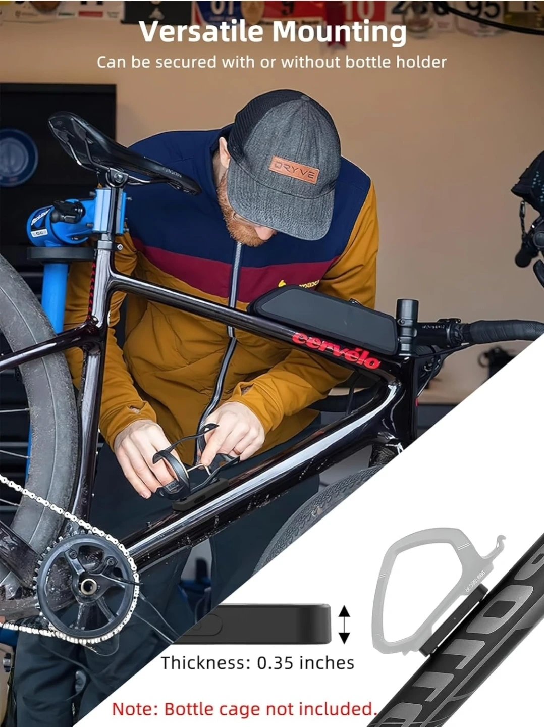 Installs securely under a bike bottle holder for hidden protection.