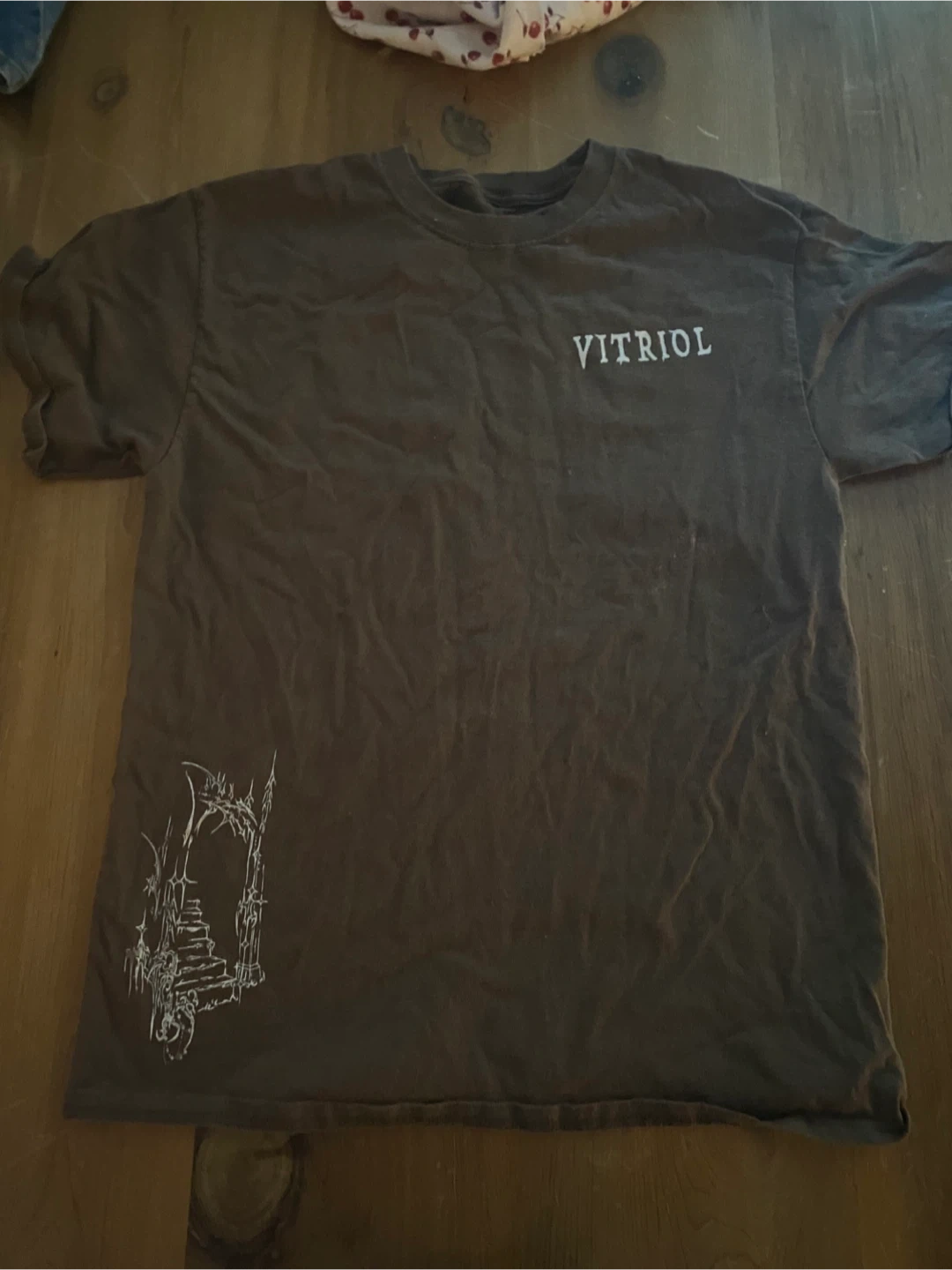 Buy & SellVitriol T-ShirtVitriol T-Shirt$33Brown short-sleeve t-shirt with 'Vitriol' graphic on the front and a large wing graphic on the back. Cotton material. Never been worn.SizeMWHERE TO MEETPark Royal Shopping CentreView MapSELLEREthanDelbrook150 reviews0 chats·1 favorites·7 viewsSEND CHAT TO SELLERHi Ethan! I’m interested in your listing.Hi Ethan! I’m interested in your listing.Get the Karrot app to chatSign In to chat