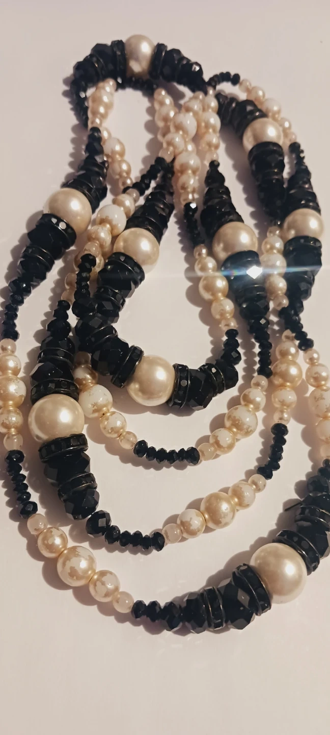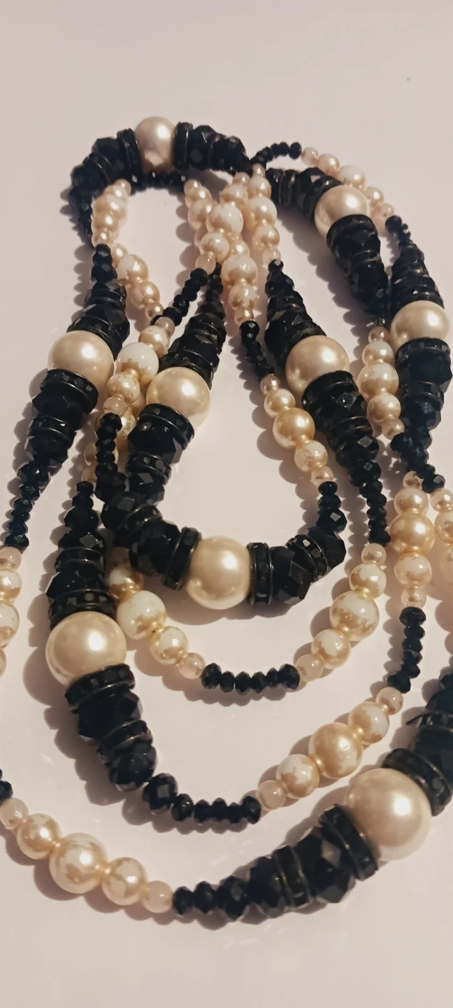 Beautiful Vintage Pearls and Black Lucite Long Beaded Necklace. 48" long. ALL MY PRICES ARE NEGOTIABLE !!