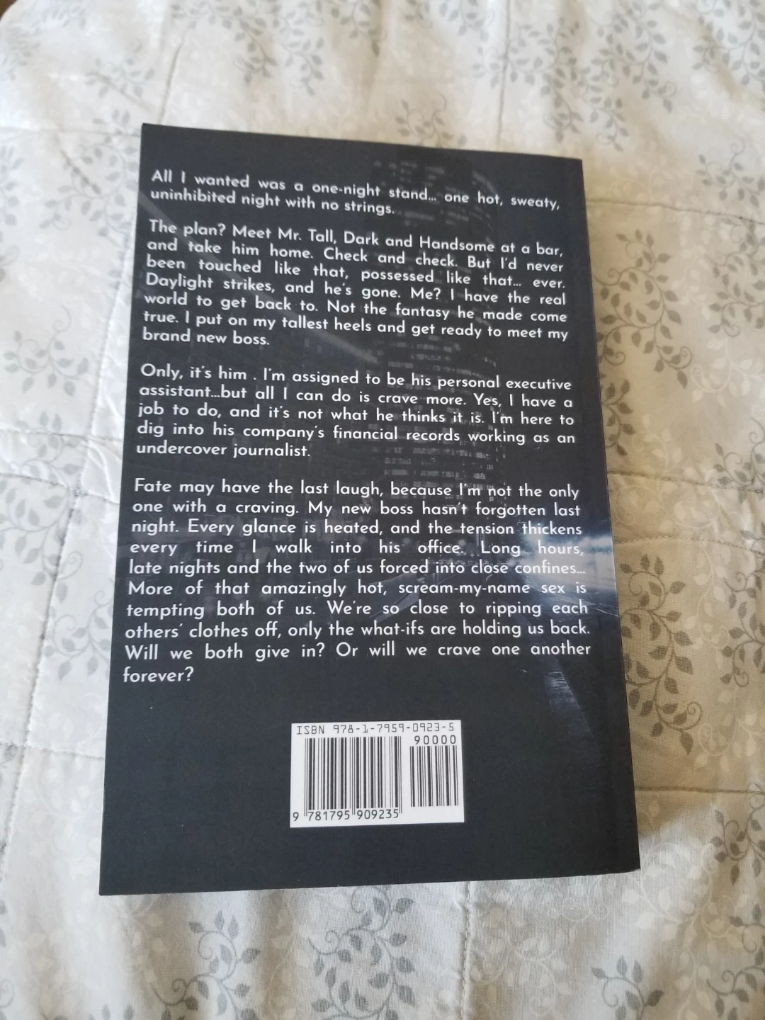 This is the paperback novel 'Crave' by Jessa James. It's a romance story about a woman who meets a compelling boss. The plot involves a mix of attraction and workplace intrigue. This book would be for fans of steamy romance novels. Brand new