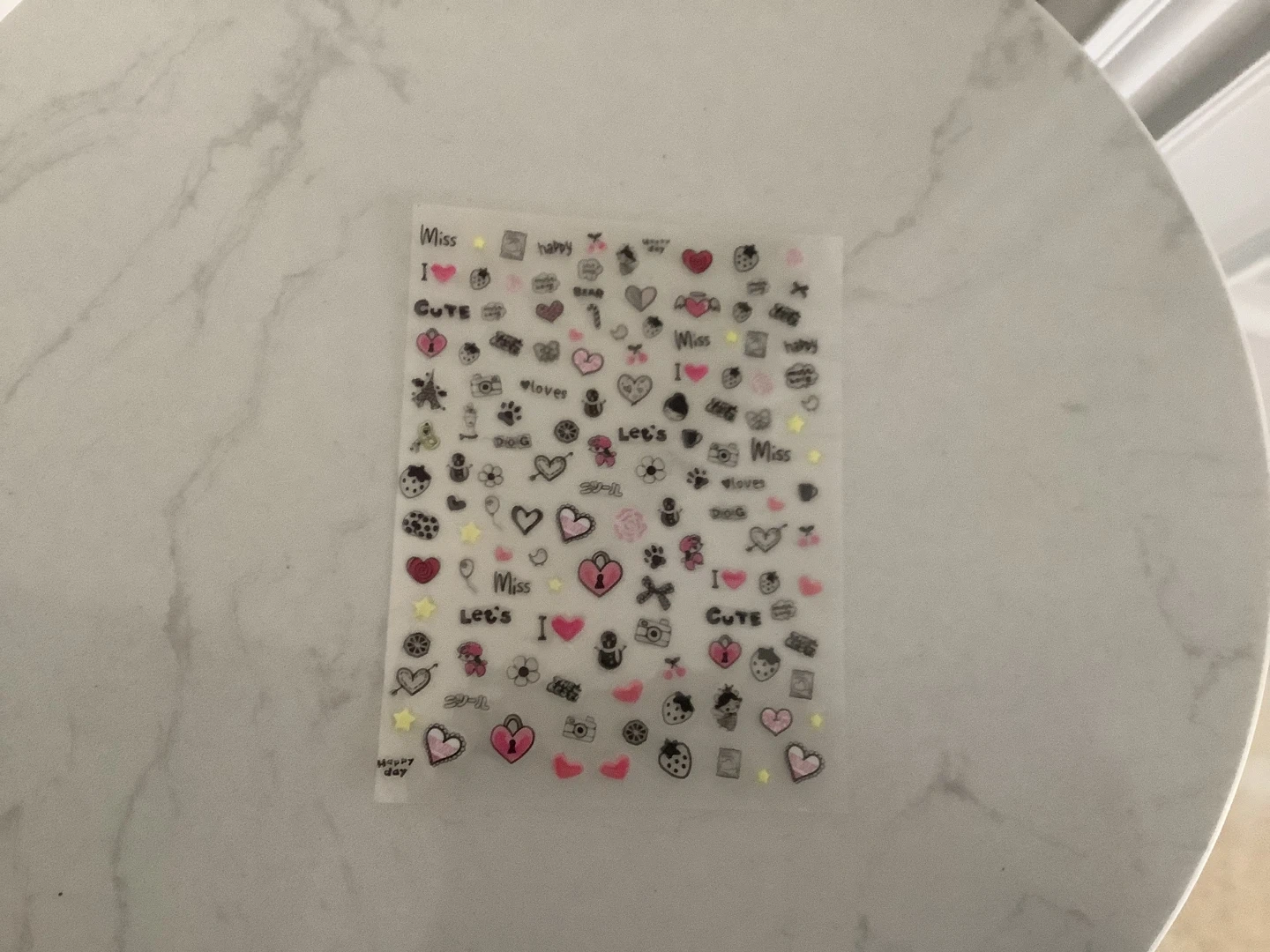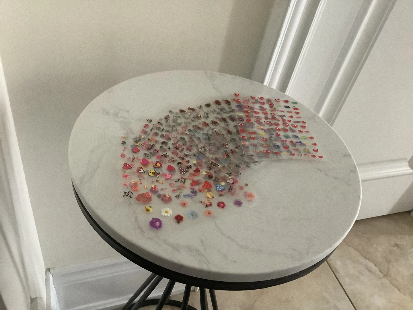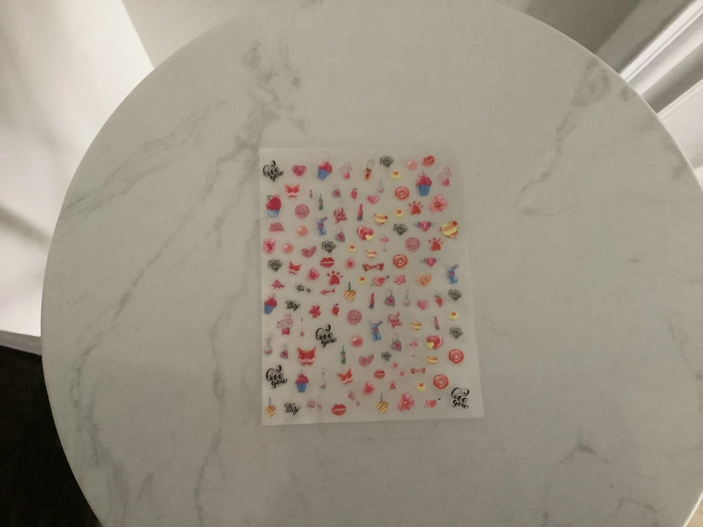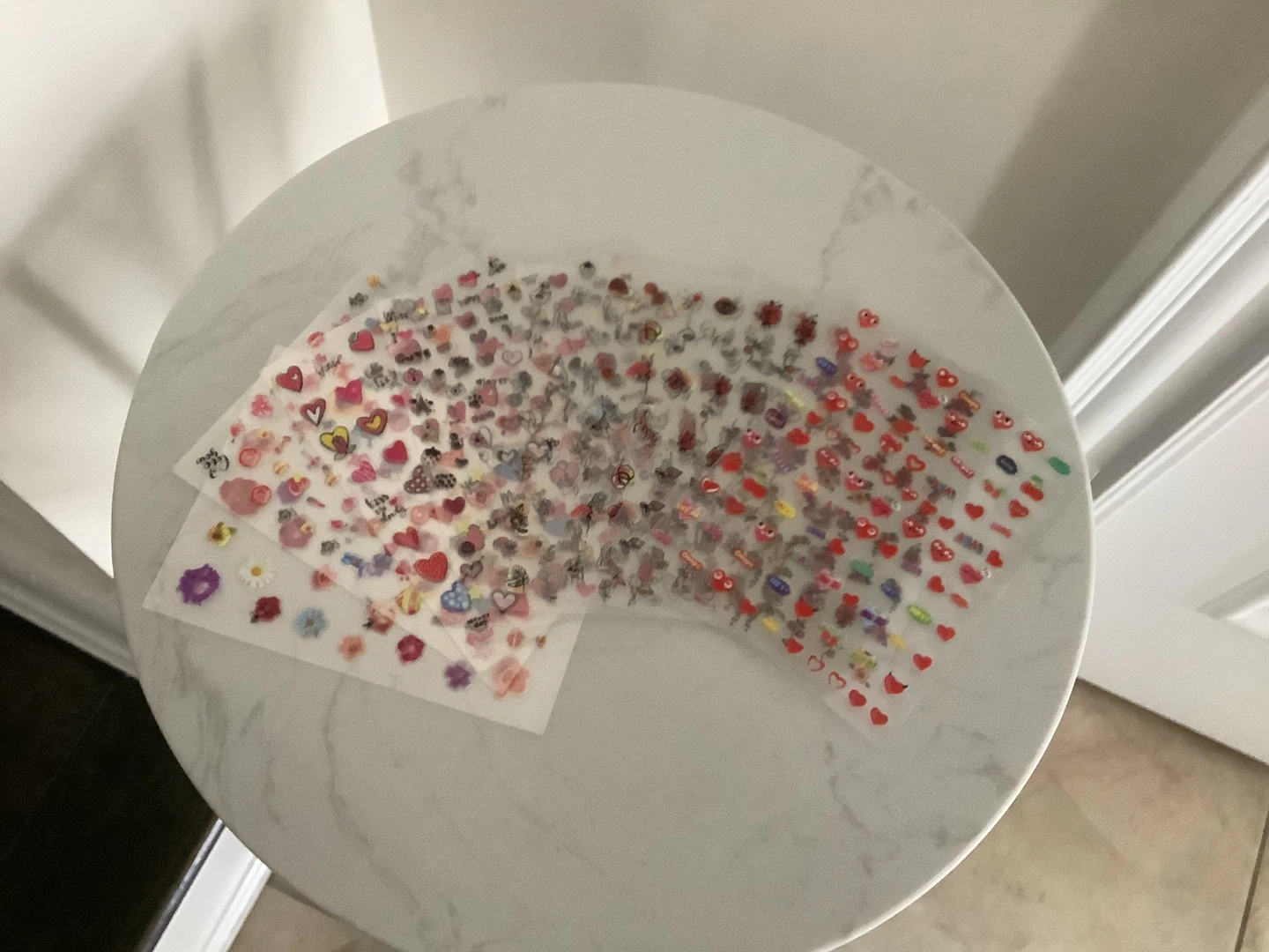 A large collection of assorted nail art stickers perfect for decorating your nails. Includes various designs like hearts, flowers, and other cute motifs. These are easy to apply for a fun nail enhancement! 10 sheets non opened.
