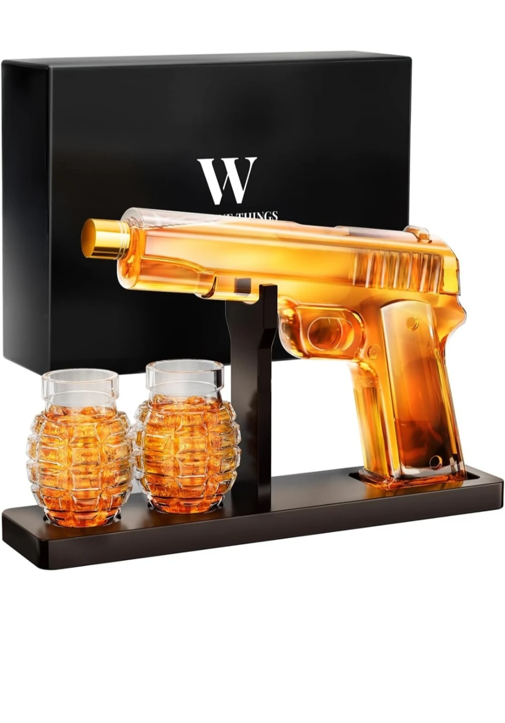 1 / 71 / 7Buy & SellWhiskey Decanter Set with Grenade GlassesWhiskey Decanter Set with Grenade Glasses$50Includes a 10.1oz gun-shaped whiskey decanter and two 2.37oz grenade-shaped glasses. Made from glass. Perfect for serving spirits!ConditionNewWHERE TO MEETLorne Thomas PlaceView MapSELLERverifiedLilibethTreetop711 review0 chats·2 favorites·24 viewsSEND CHAT TO SELLERHi Lilibeth! I’m interested in your listing.Hi Lilibeth! I’m interested in your listing.Get the Karrot app to chatSign In to chat