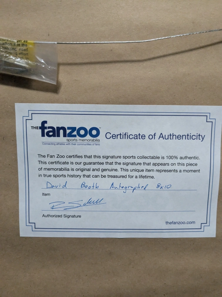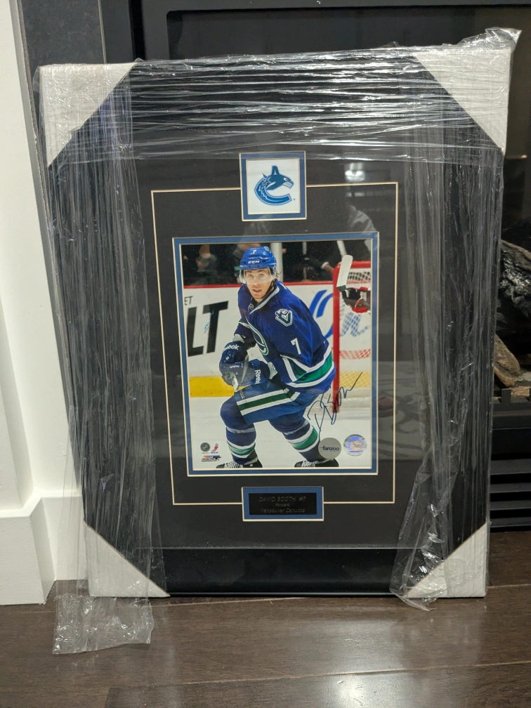 Selling a framed and autographed photo of David Booth, #7, Forward for the Vancouver Canucks. It comes with a certificate of authenticity from The Fan Zoo.