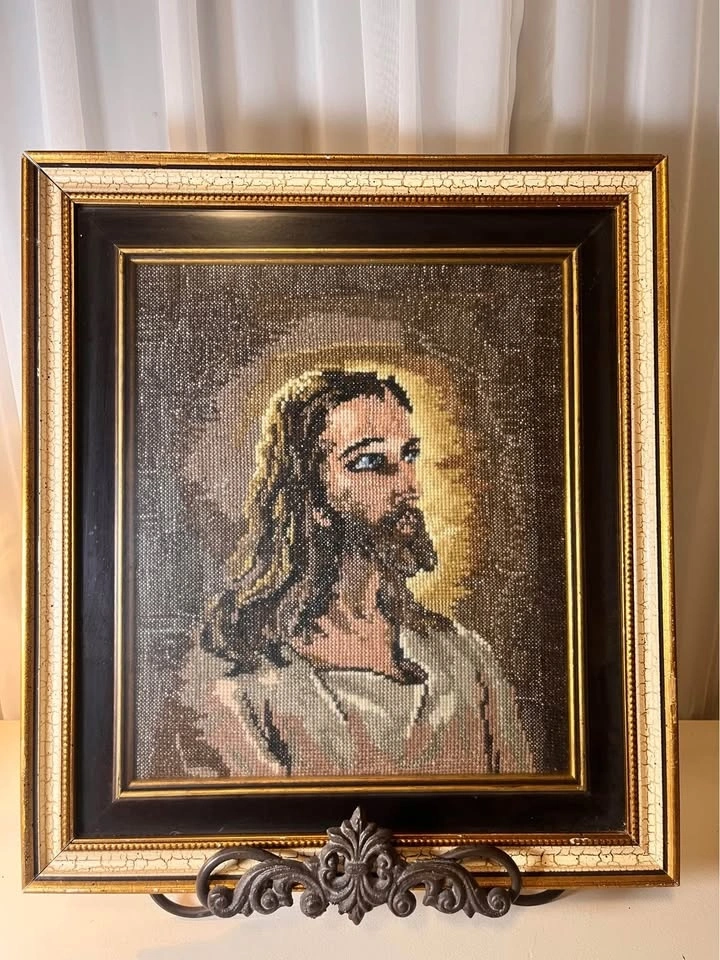Vintage Jesus cross stitch framed wall hanging. 15 inches width, 17 inches height. In good vintage condition, minor peeling paint on frame due to its age. Pickup in Calder, Northside of Edmonton (129 Ave & 116 St NW).