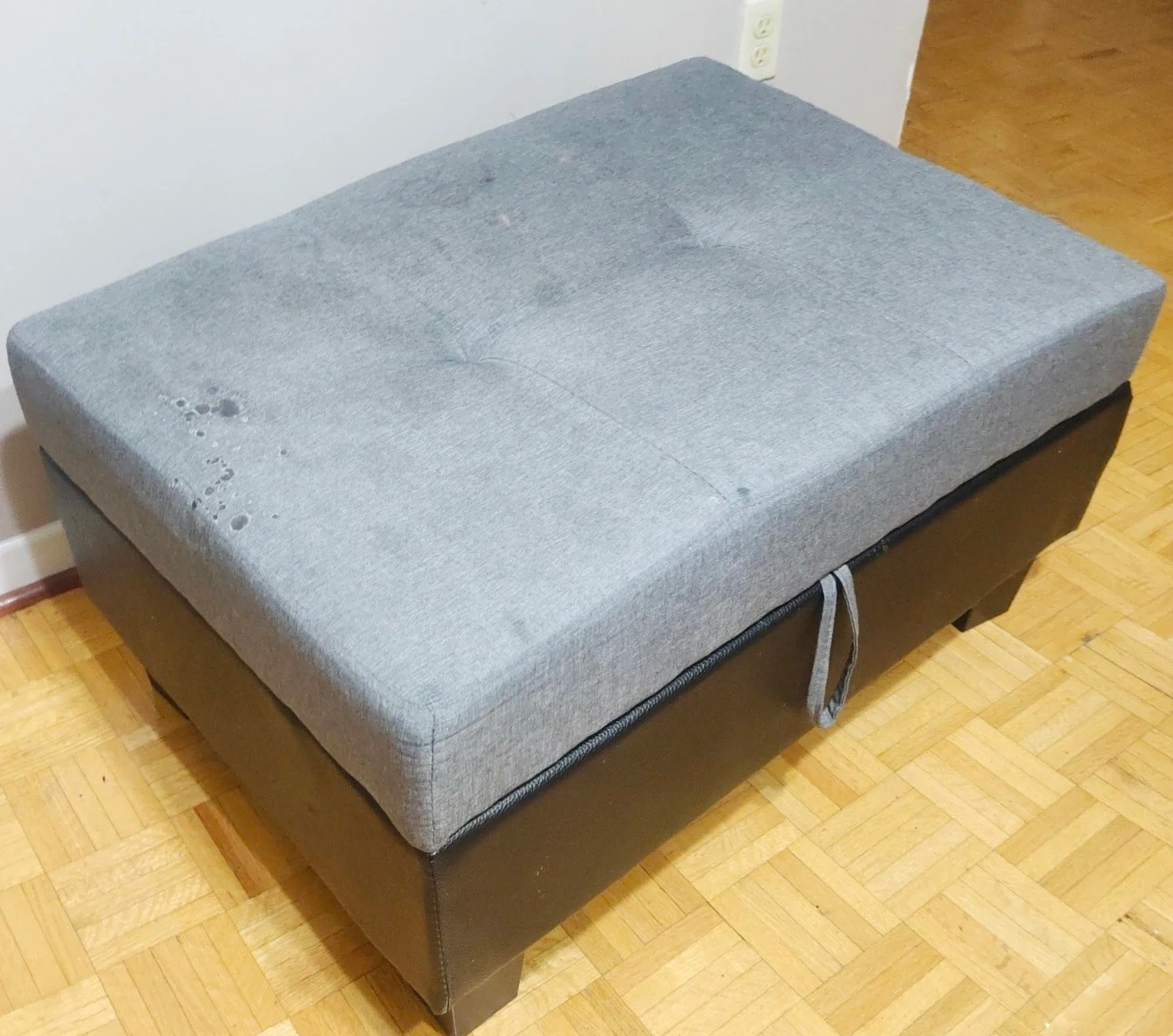 Storage Ottoman - Grey Fabric Top, Black Base