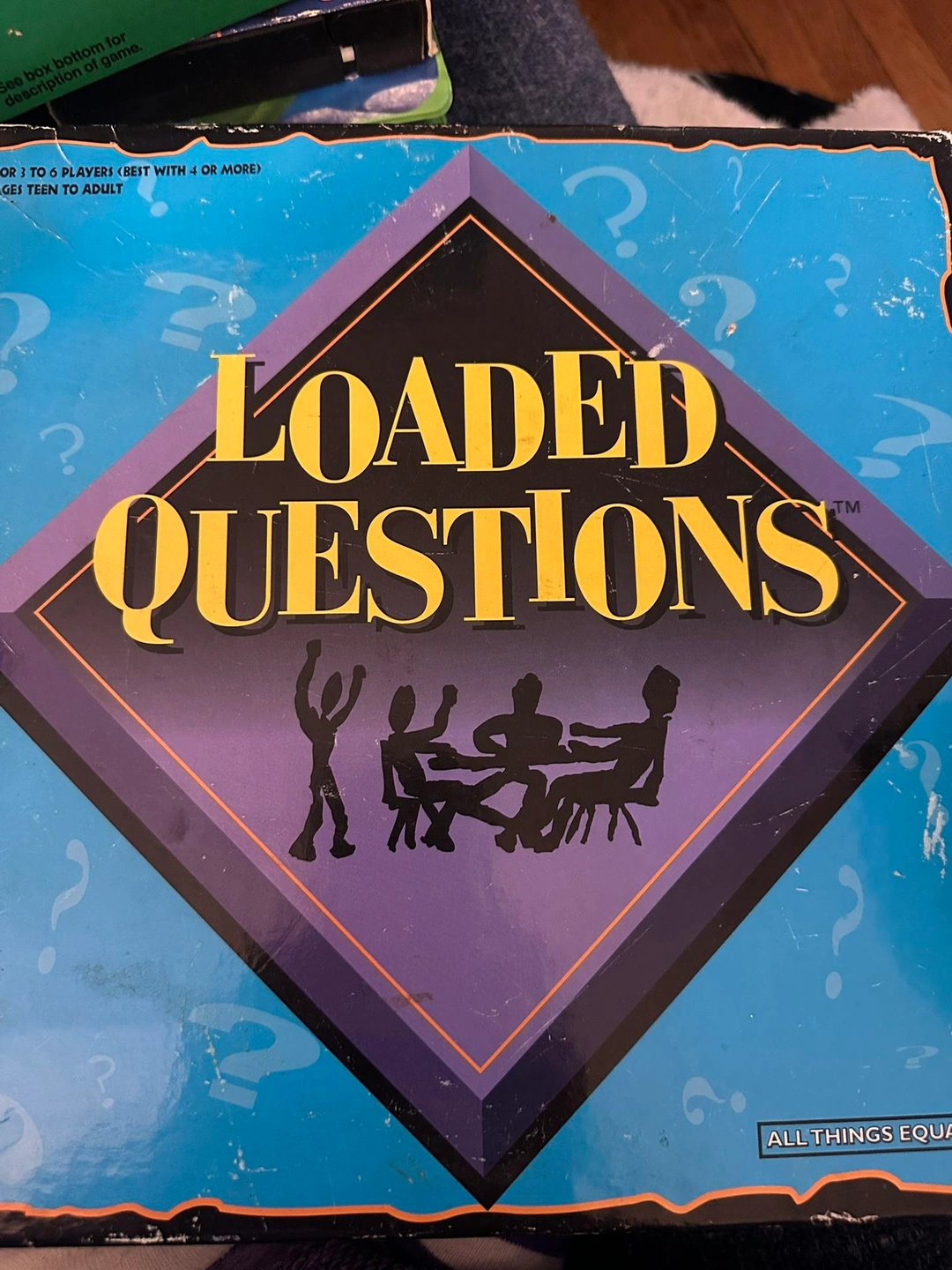 Loaded Questions is a fun party game where players answer questions about each other. It's great for groups and parties. Includes all the cards and game pieces.