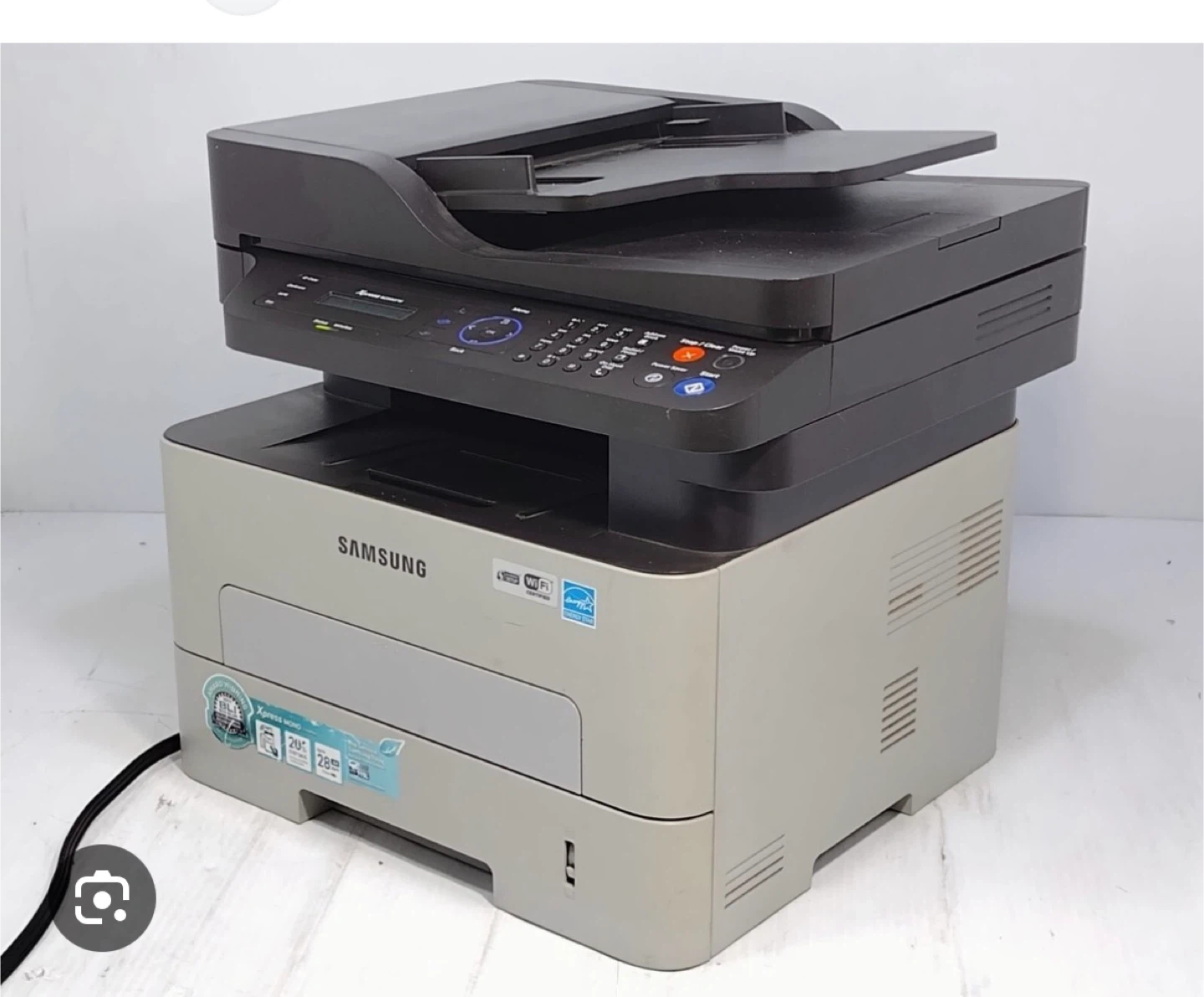 Samsung Xpress Mono multifunction printer. It's a wireless device. Supports 20 pages per minute printing. Samsung 2885FW