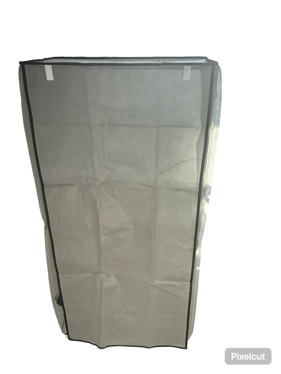 This is an 8-tier storage shelf with a gray fabric cover. It's perfect for organizing shoes or other items in your home. The shelves are made of non-woven fabric with metal poles.