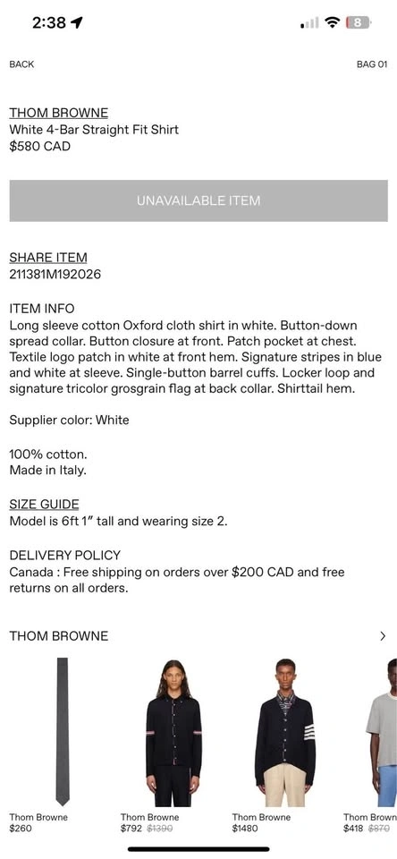 Buy & SellThom Browne Shirt - Size 2Thom Browne Shirt - Size 2$350Bought from SSENSE - used only a couple of times.WHERE TO MEETCheck LocationView MapSELLERAliDowntown100 reviews0 chats·0 favorites·1 viewsSEND CHAT TO SELLERHi Ali! I’m interested in your listing.Hi Ali! I’m interested in your listing.Get the Karrot app to chatSign In to chat