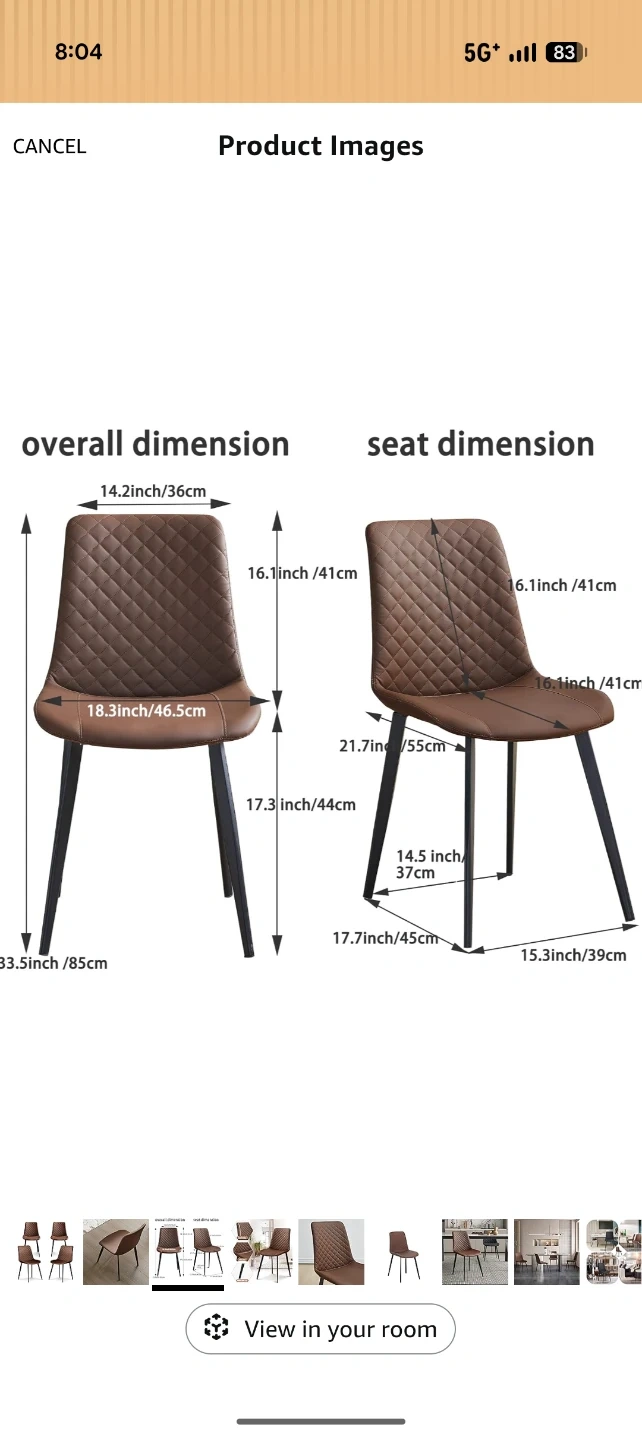 Comfortable dining chair with a wide seat. Upholstered in brown with diamond stitching. Features sturdy metal legs for support.