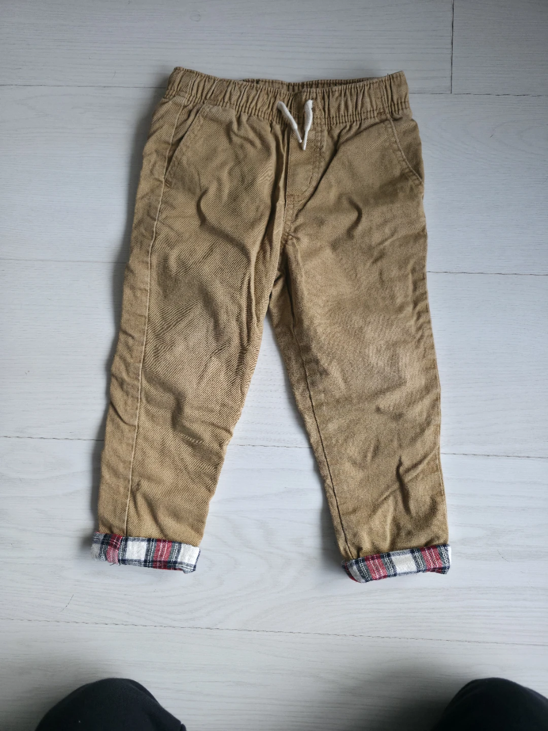 These Old Navy pants are size 3A and feature a functional drawstring. They're lined with a cozy flannel material, perfect for keeping your little one warm!