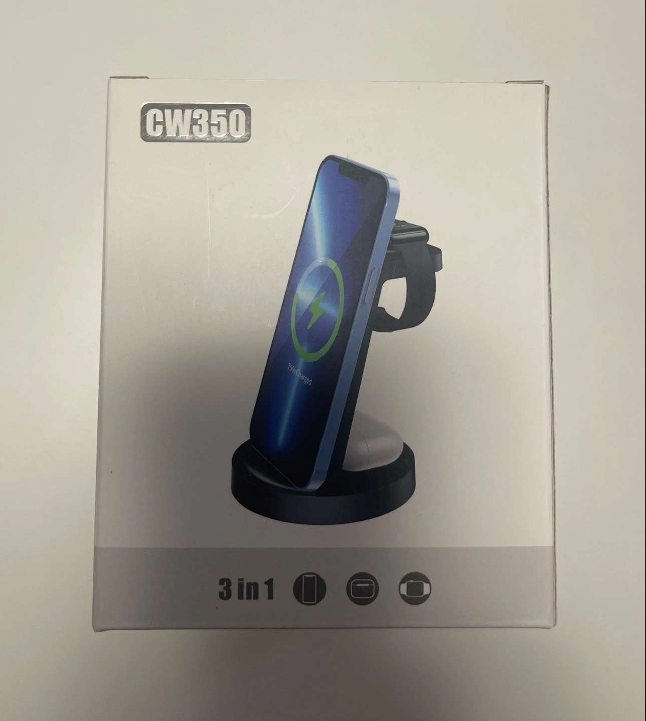 New 3-in-1 wireless charging station. Charges phones, Apple watches, and AirPods simultaneously. Compact design, convenient for bedside table or desk.