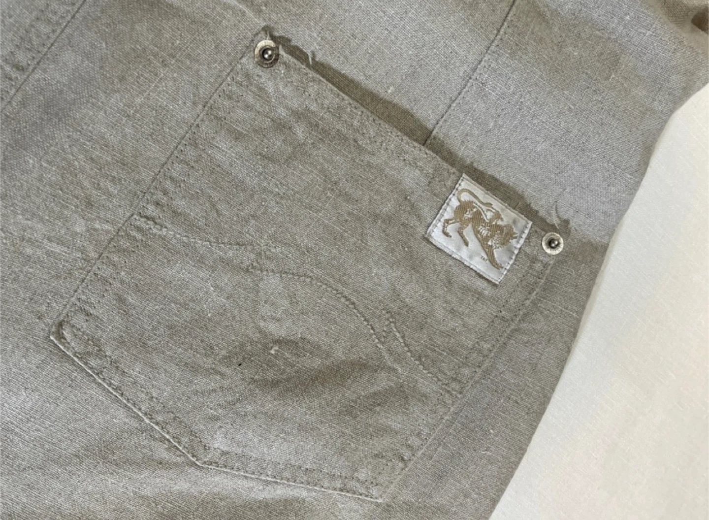 The natural linen fabric gives it a soft, earthy texture that only improves with time. Thoughtful details like metal logo buttons, functional pockets, and tailored seams make this a standout piece for warm weather, layering, or year-round styling.
