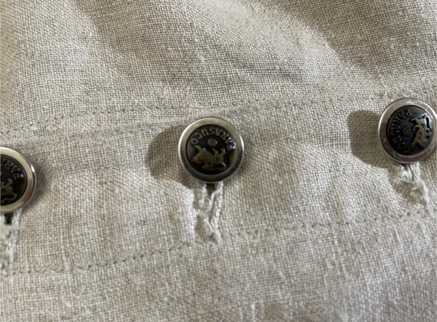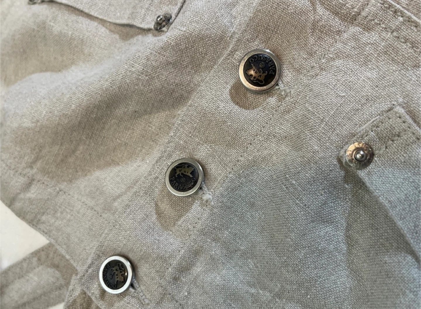 The natural linen fabric gives it a soft, earthy texture that only improves with time. Thoughtful details like metal logo buttons, functional pockets, and tailored seams make this a standout piece for warm weather, layering, or year-round styling.
