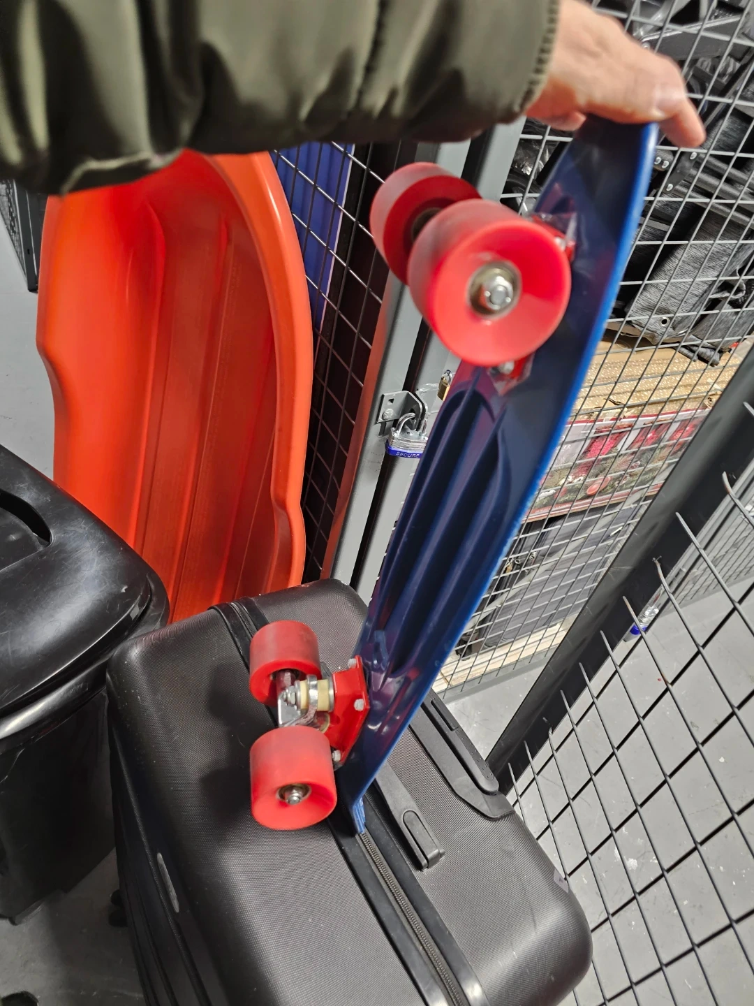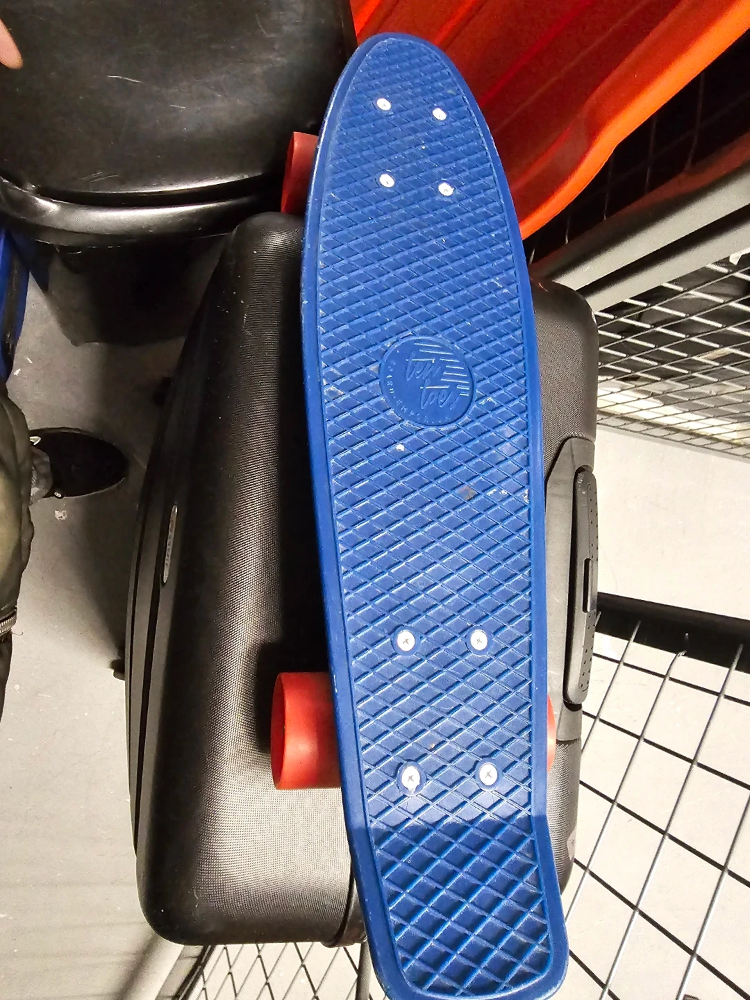 Selling a blue Penny board skateboard with red wheels! It's in good condition and ready for some fun rides around town. Perfect for beginners or experienced skaters alike