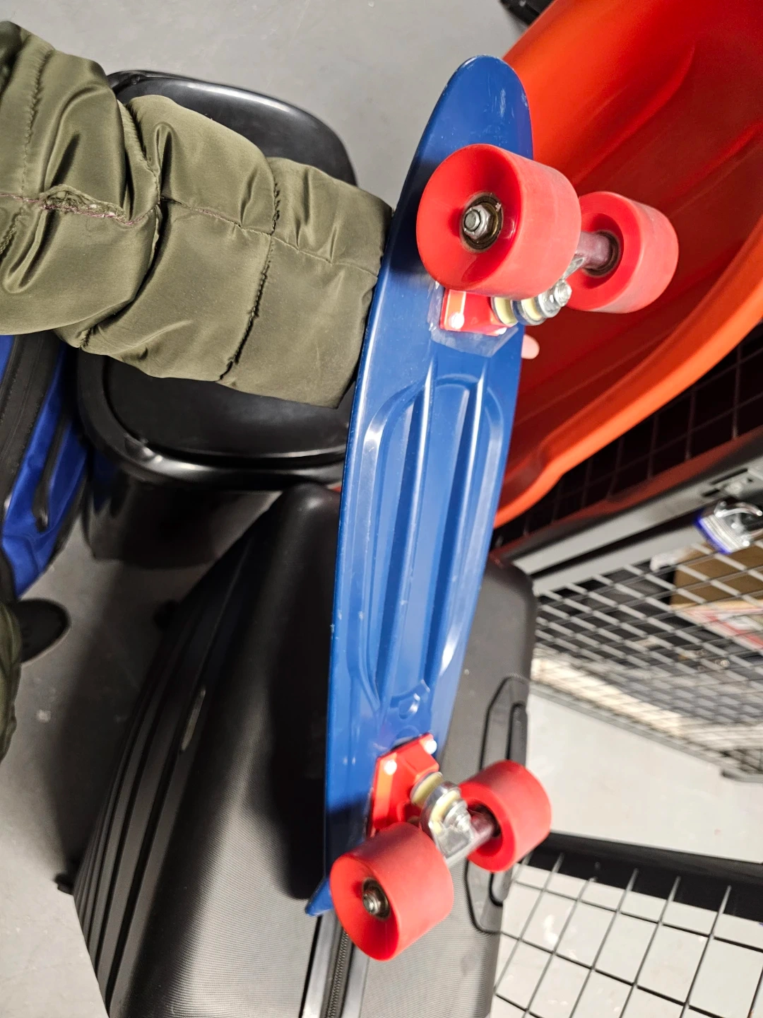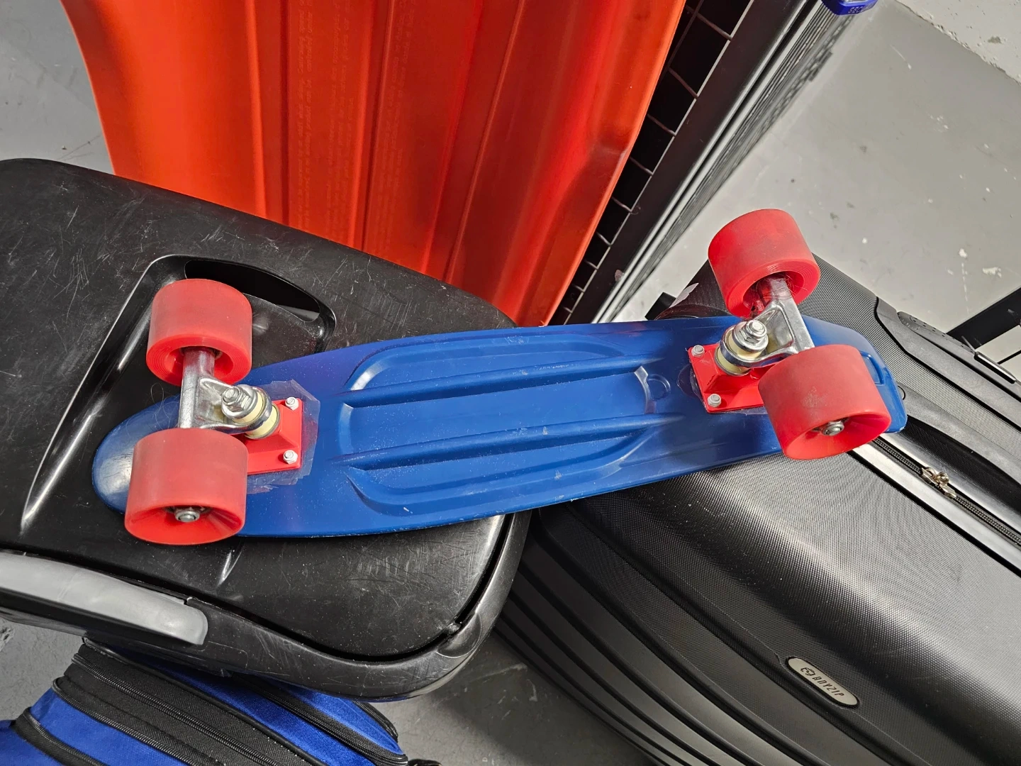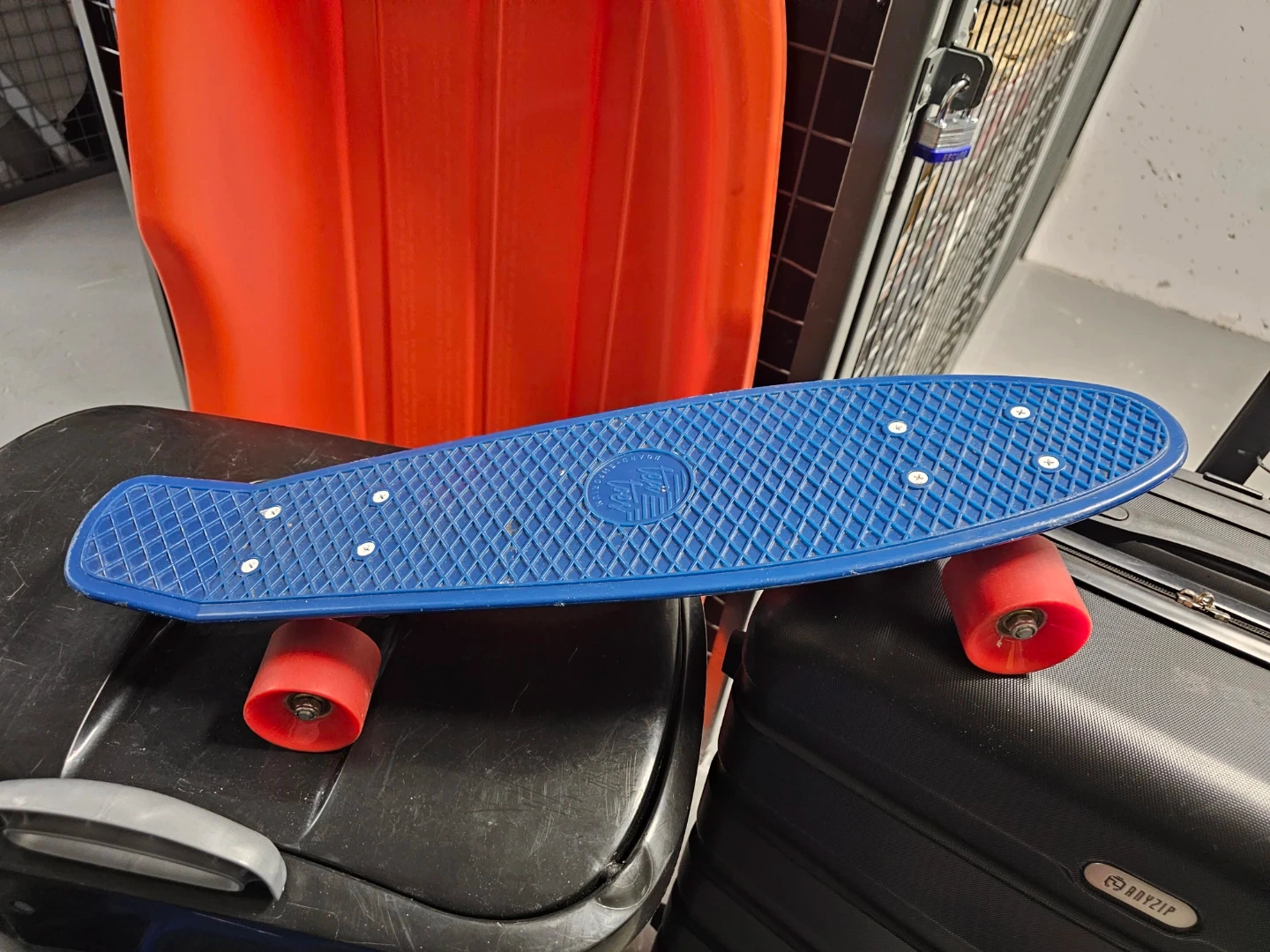Selling a blue Penny board skateboard with red wheels! It's in good condition and ready for some fun rides around town. Perfect for beginners or experienced skaters alike