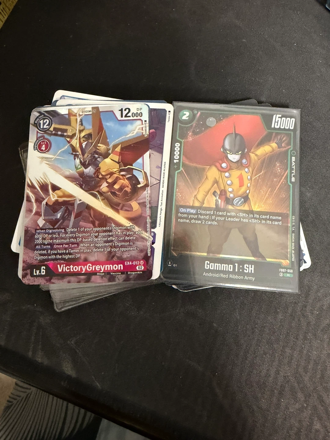 Selling a couple of Digimon Trading Cards! One is VictoryGreymon Lv.6 and the other is Gamma 1: SH from the Android/Red Ribbon Army. Great for any Digimon TCG fan!