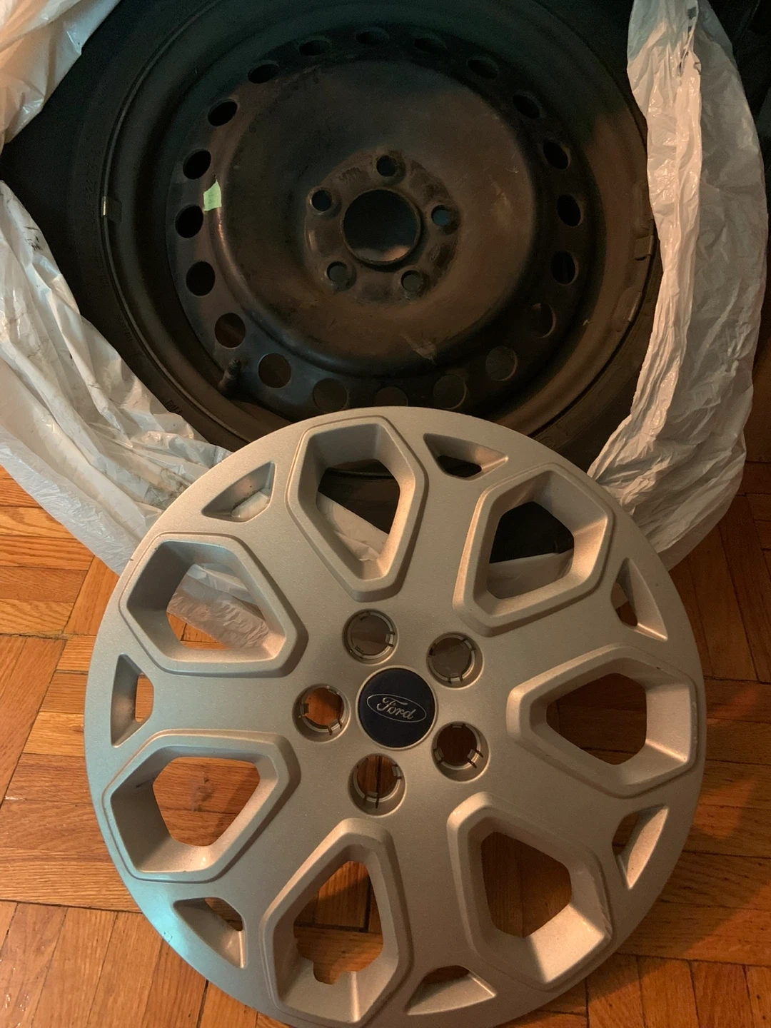 Selling four 16 inch steel Ford rims with matching hubcaps ($45 per rim). It's in used condition.