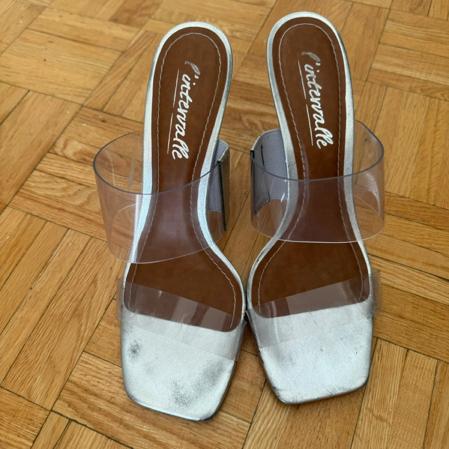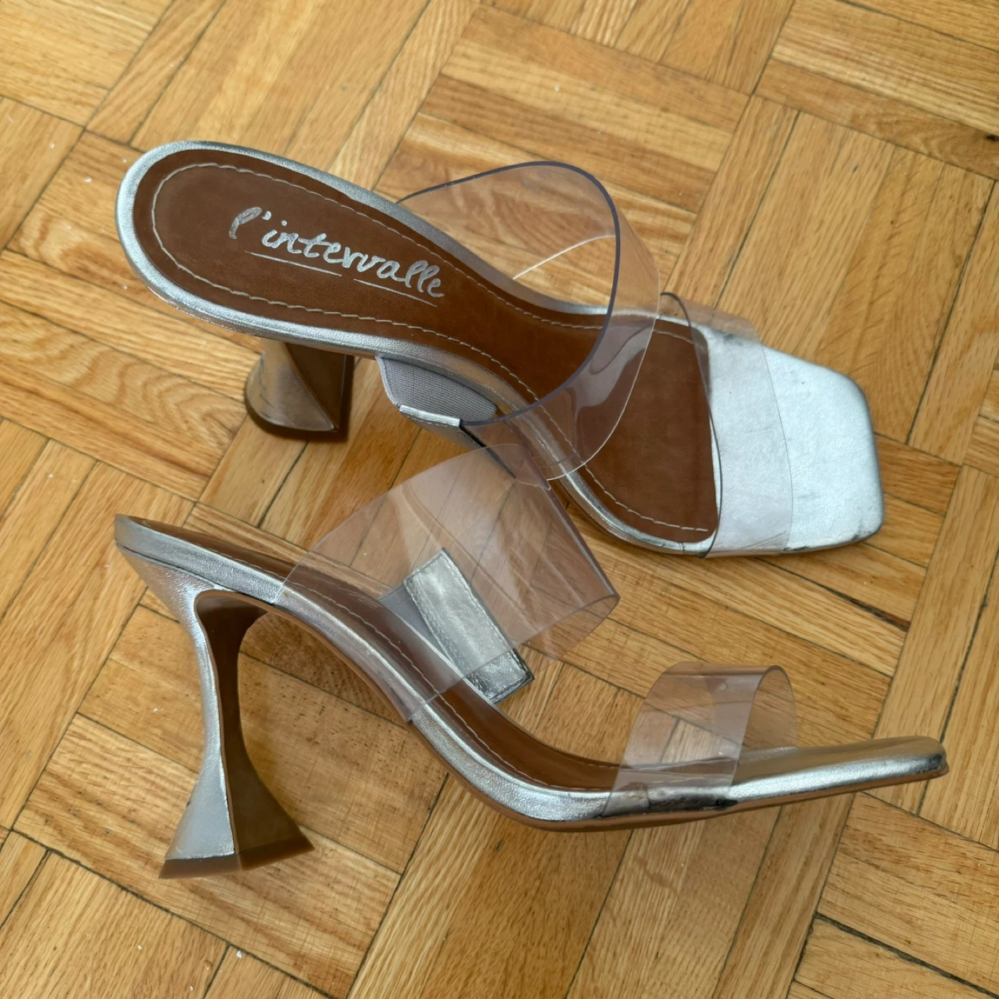Selling a pair of L'intervalle Tao heels in silver metallic! They're a size 41 and feature a unique, eye-catching heel design. Perfect for adding a touch of sparkle to your outfit!