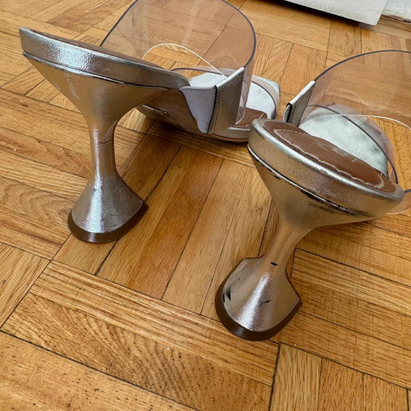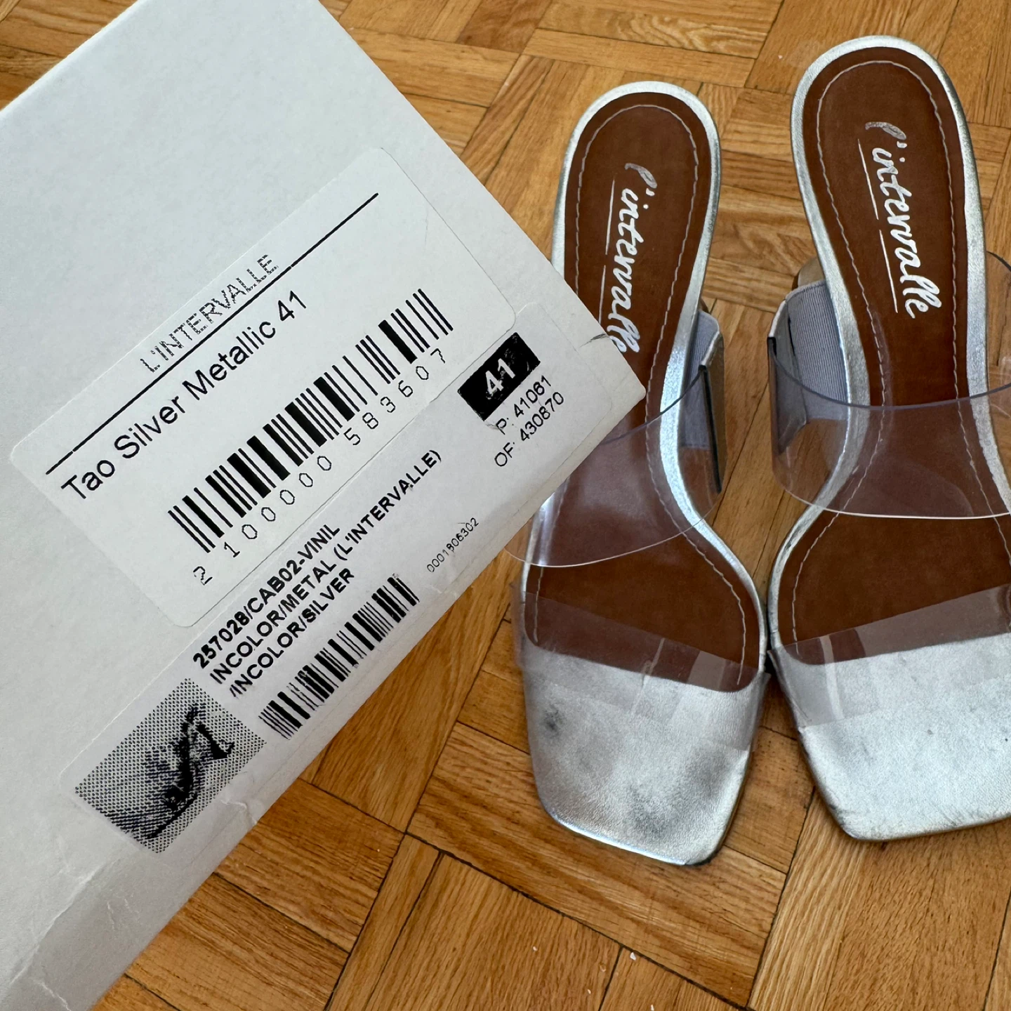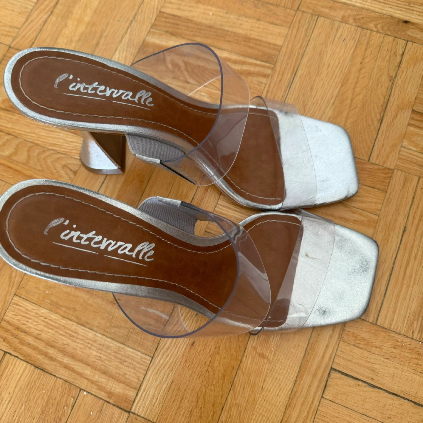 Selling a pair of L'intervalle Tao heels in silver metallic! They're a size 41 and feature a unique, eye-catching heel design. Perfect for adding a touch of sparkle to your outfit!