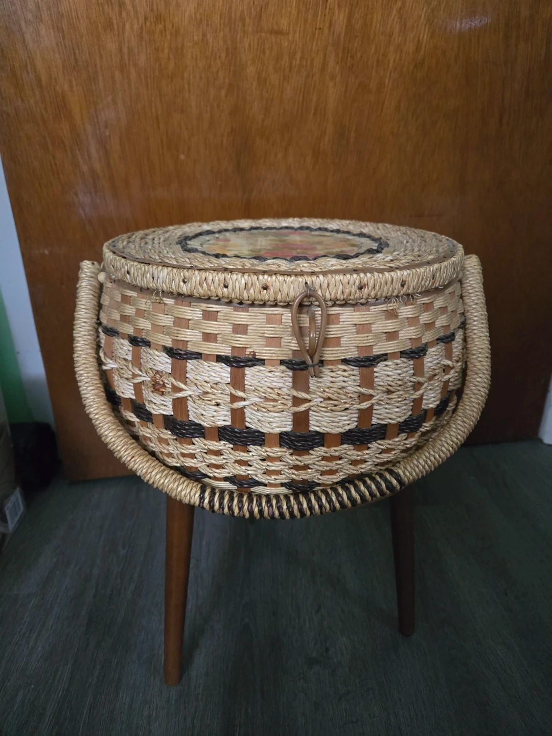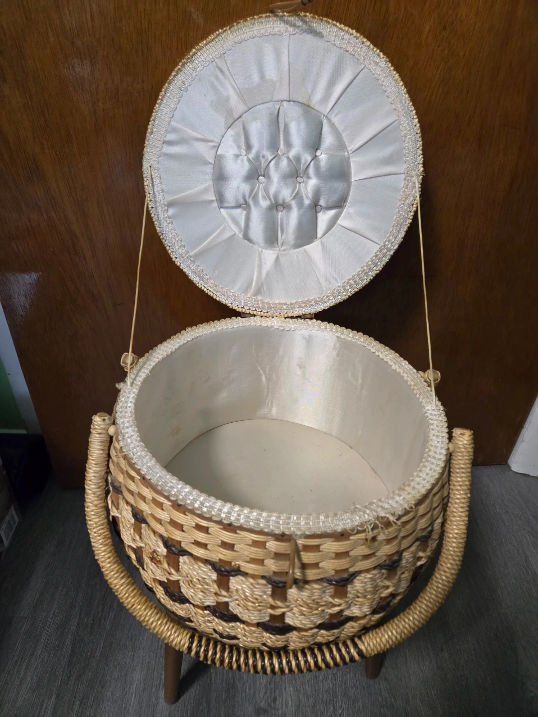Vintage Woven Bamboo Sewing Basket