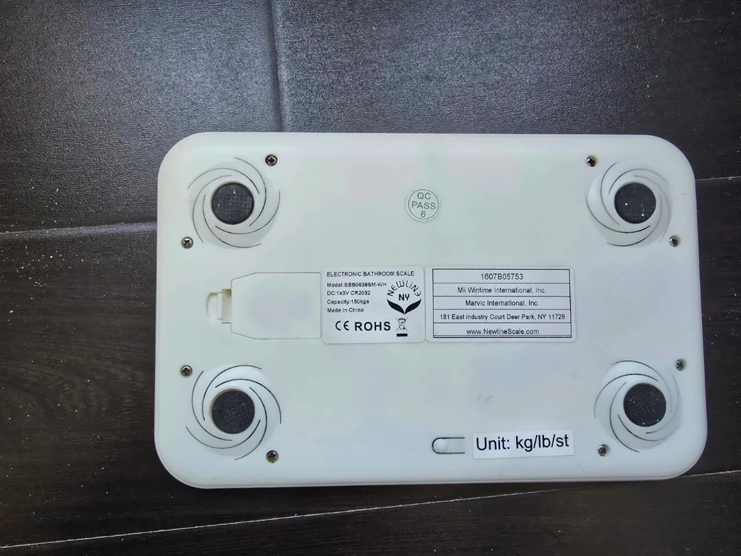 Newline NY electronic bathroom scale. Max capacity 150kg. Unit: kg/lb/st.