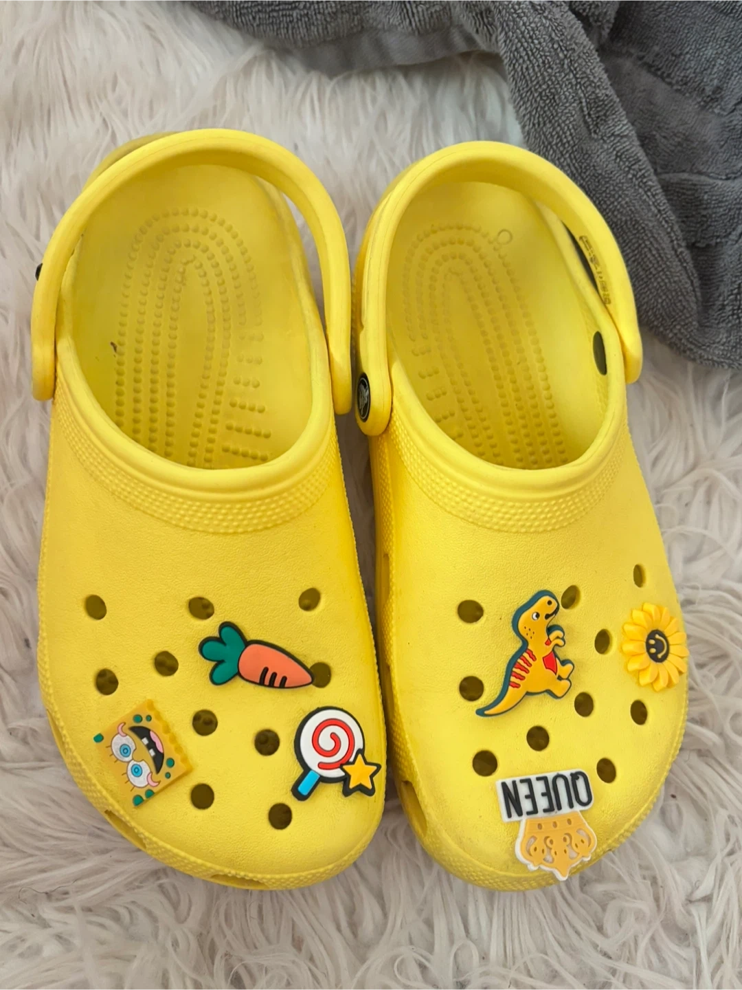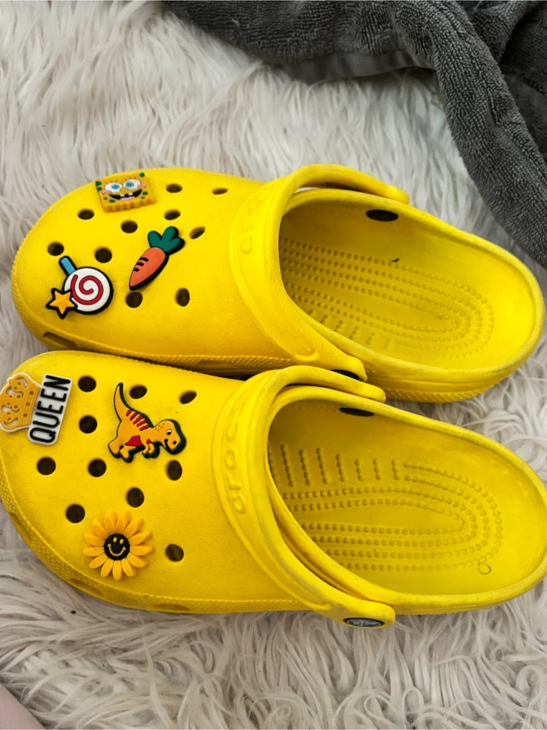 Buy & SellYellow Crocs Clogs with CharmsYellow Crocs Clogs with Charms$15Bright yellow Crocs clogs are decorated with fun Jibbitz charms. They're a fun and comfy choice for womans size 5 women size 7 in mens.Size5-7 BrandCrocsWHERE TO MEETtorontoView MapSELLERverifiedKourtneyWillowdale E781 review0 chats·0 favorites·3 viewsSEND CHAT TO SELLERHi Kourtney! I’m interested in your listing.Hi Kourtney! I’m interested in your listing.Get the Karrot app to chatSign In to chat