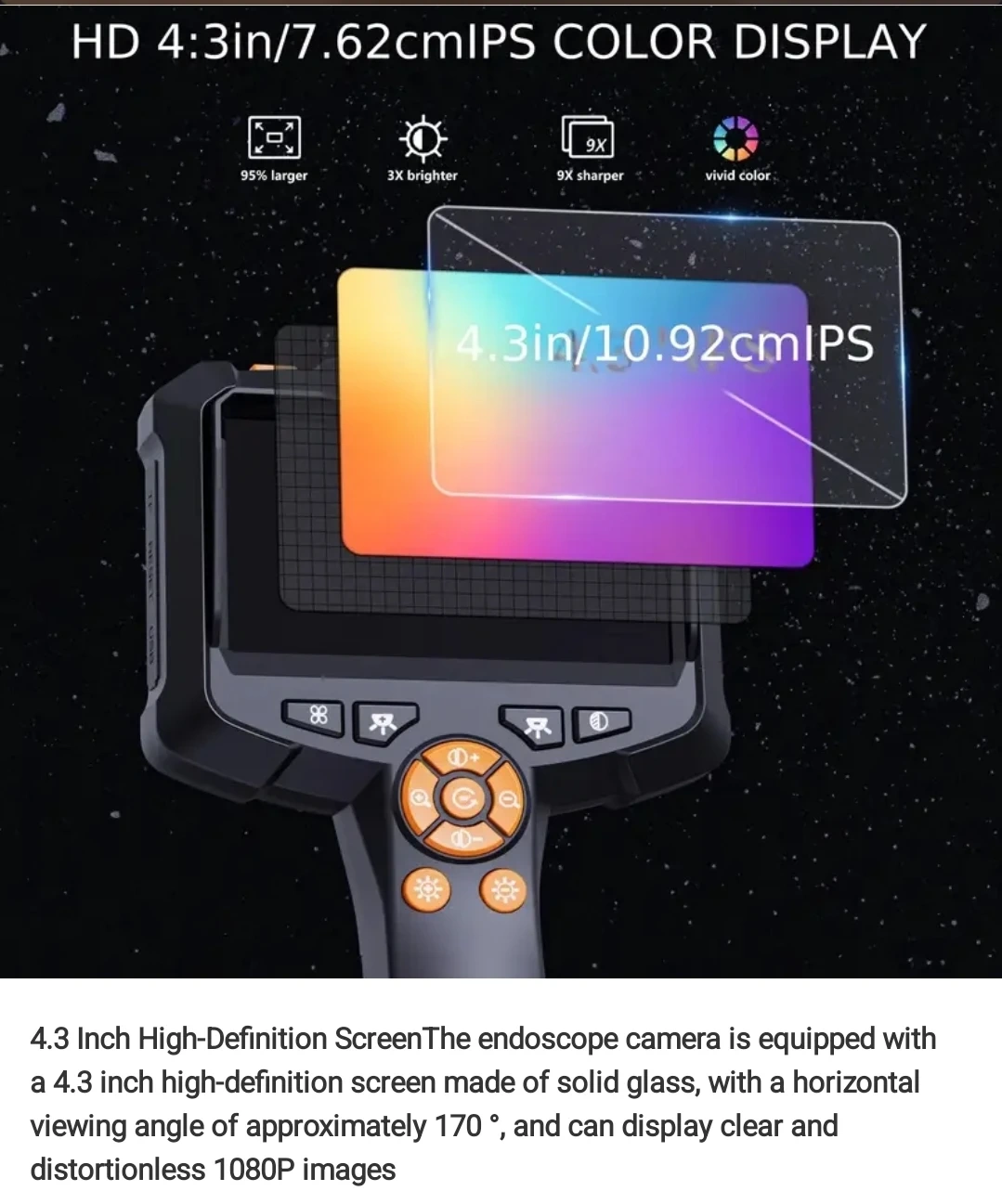 Industrial Borescope, 4.3" Endoscope Camera with Light, IP67 Waterproof Endoscope, 1080 HD Inspection Camera, Borescope Camera with Light, Snake Camera, 16.5ft Endoscope Camera. Brand new. Great for checking in walls, under decks, great for mechanics, plumbers, or dyi jobs. basically anywhere where you cant reach. Comes with a magnetic tip , hook, and mirror attachments. $90