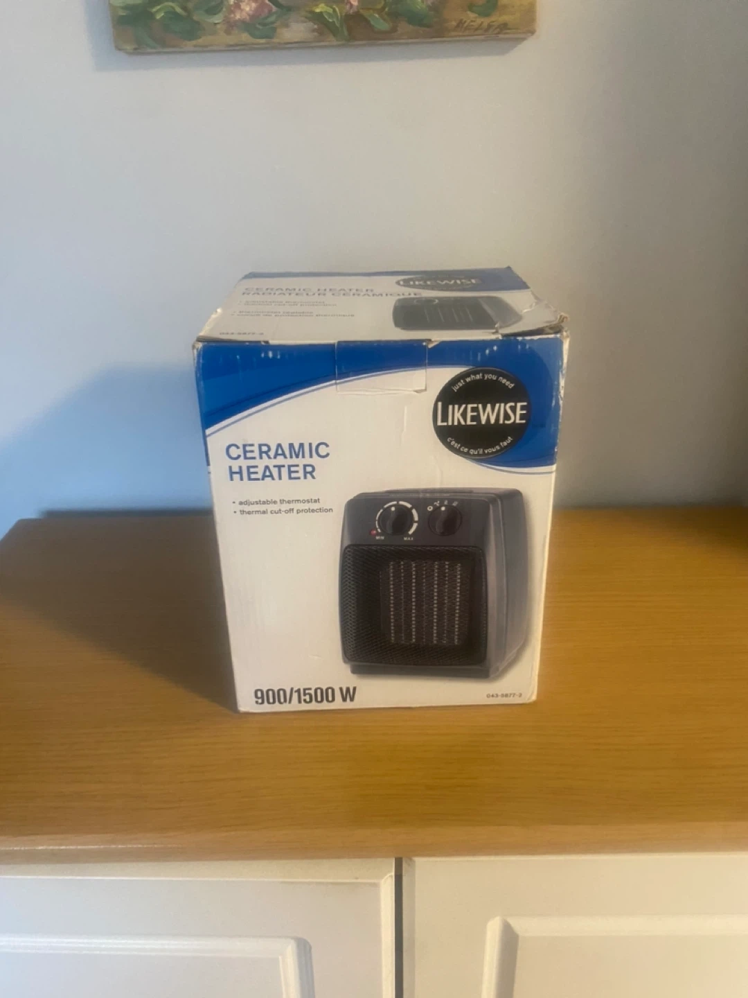 Likewise ceramic heater with an adjustable thermostat and thermal cut-off protection. It's 900/1500 W. Great for keeping a small space warm!