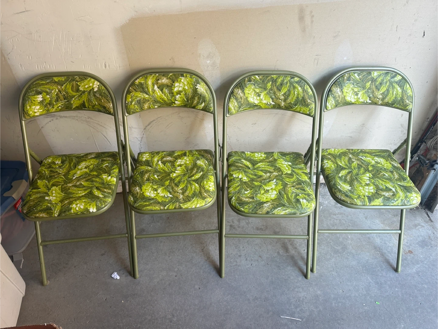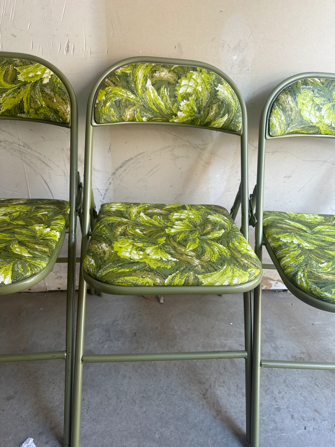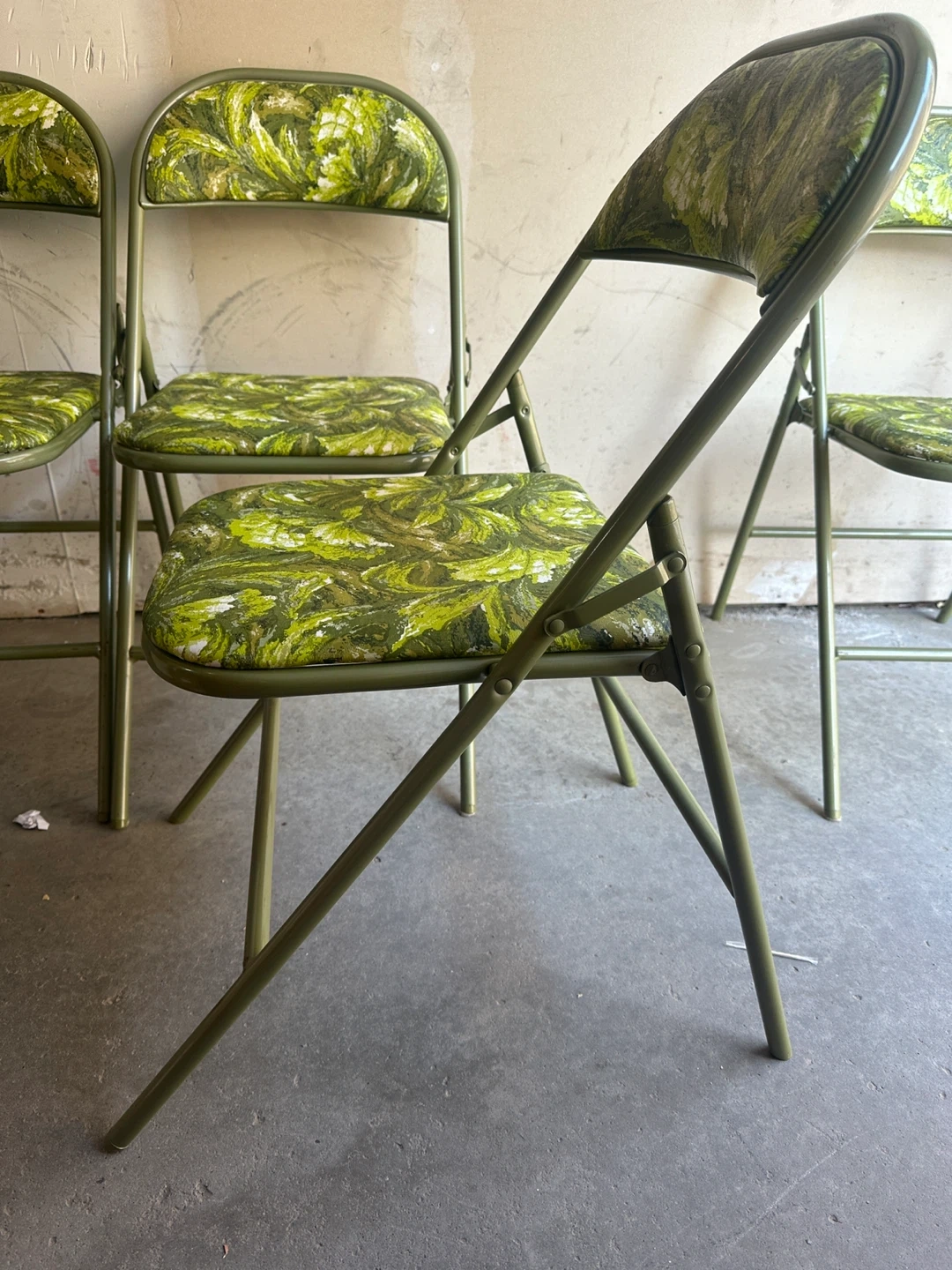 Set of 4 Vintage Folding Chairs - Green Floral Pattern