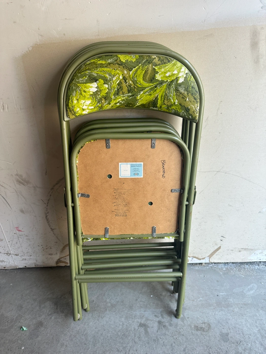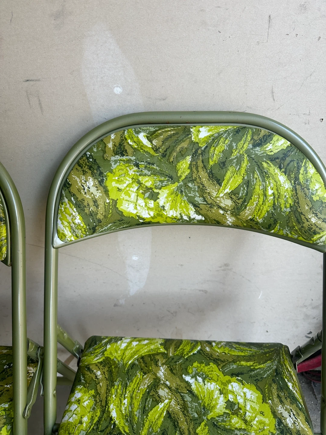 Set of 4 Vintage Folding Chairs - Green Floral Pattern