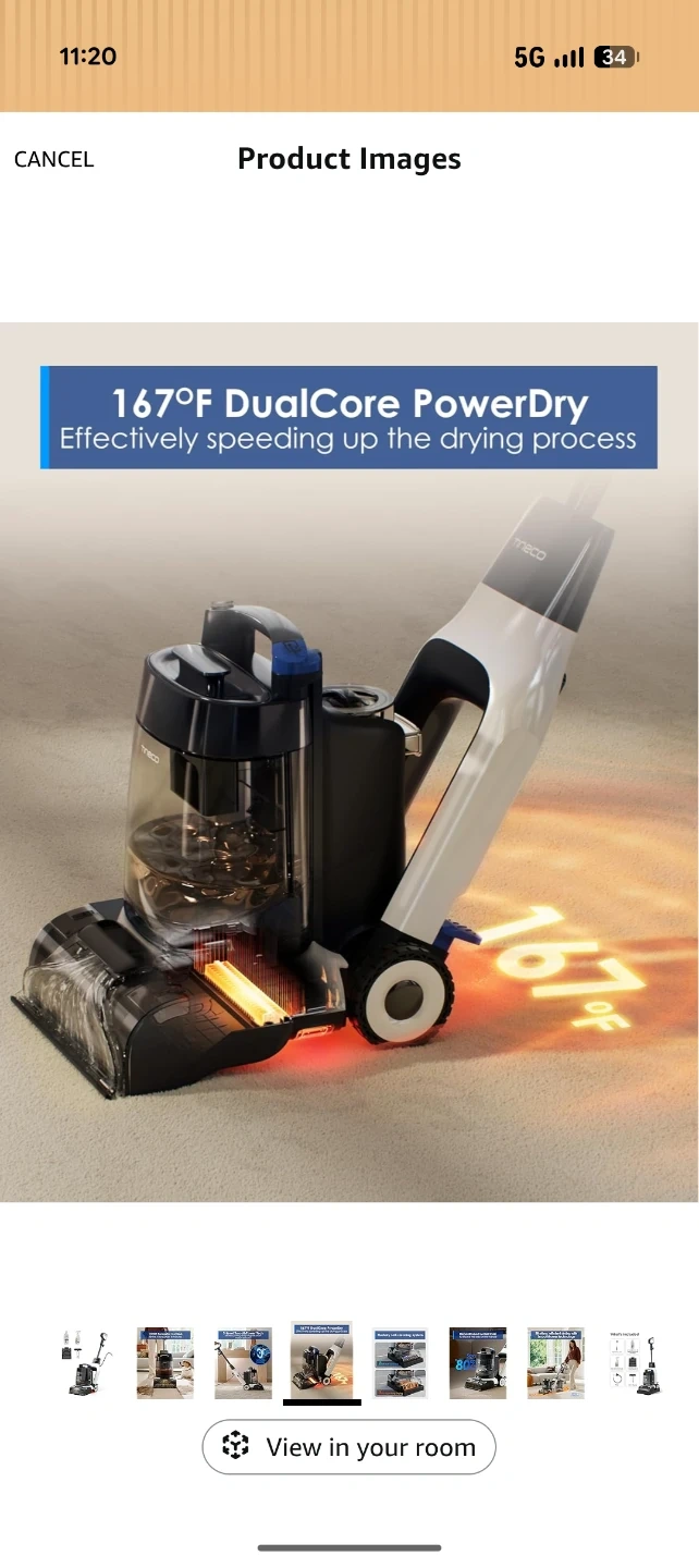 This Tineco carpet cleaner features 130W powerful suction to revive carpets. It uses 167°F DualCore PowerDry technology for fast drying. Includes a self-cleaning system for convenience!
