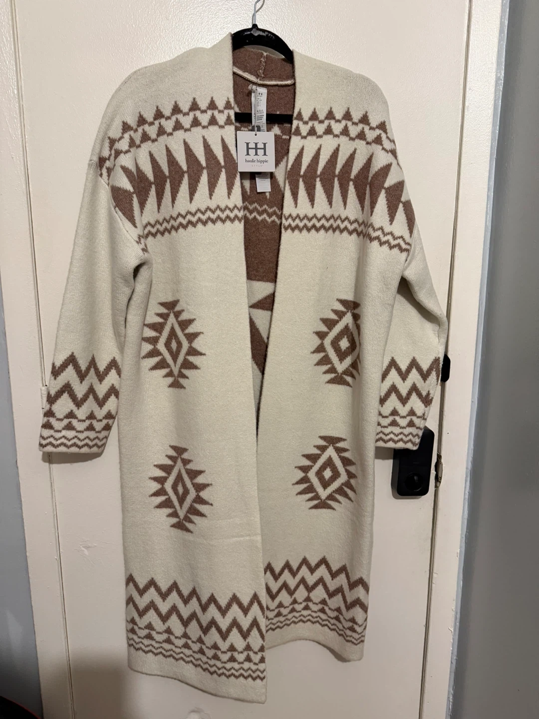 Buy & SellHaute Hippie Style CardiganHaute Hippie Style Cardigan$40Cream and brown geometric pattern cardigan. This sweater has a relaxed fit and open front. Made from a blend of polyester, rayon, and spandex.ConditionNewSizeLBrandHaute Hippie StyleWHERE TO MEETSouthern blvdView MapSELLERverifiedReBuyLongwood600 reviews0 chats·0 favorites·4 viewsSEND CHAT TO SELLERHi ReBuy! I’m interested in your listing.Hi ReBuy! I’m interested in your listing.Get the Karrot app to chatSign In to chat