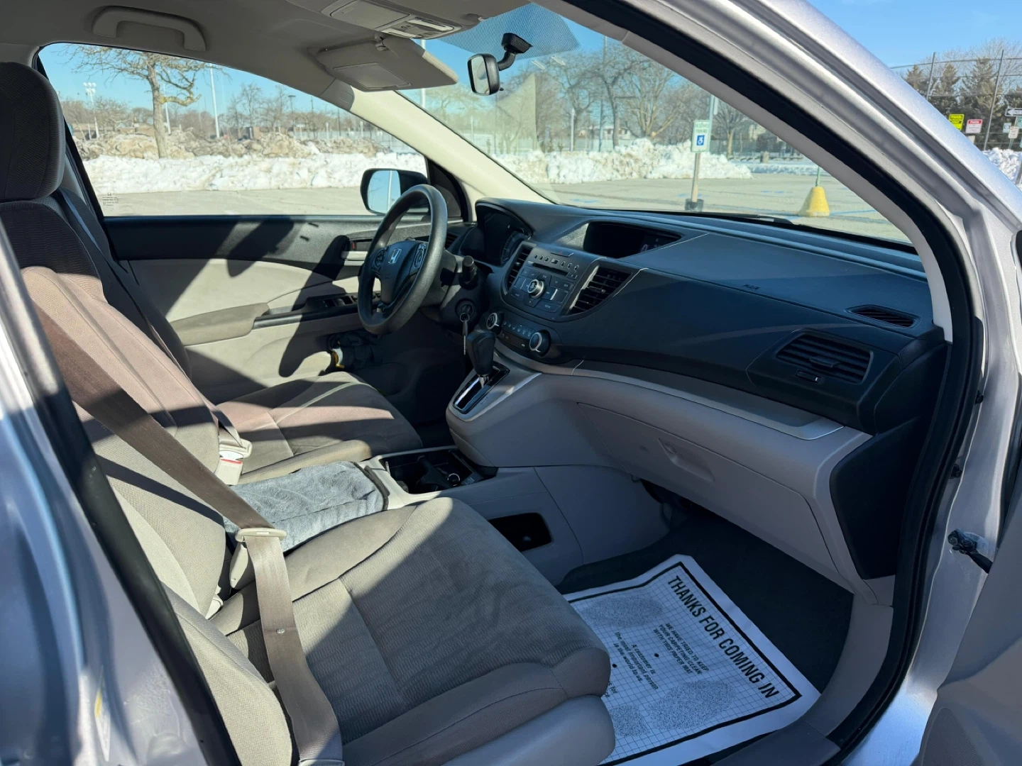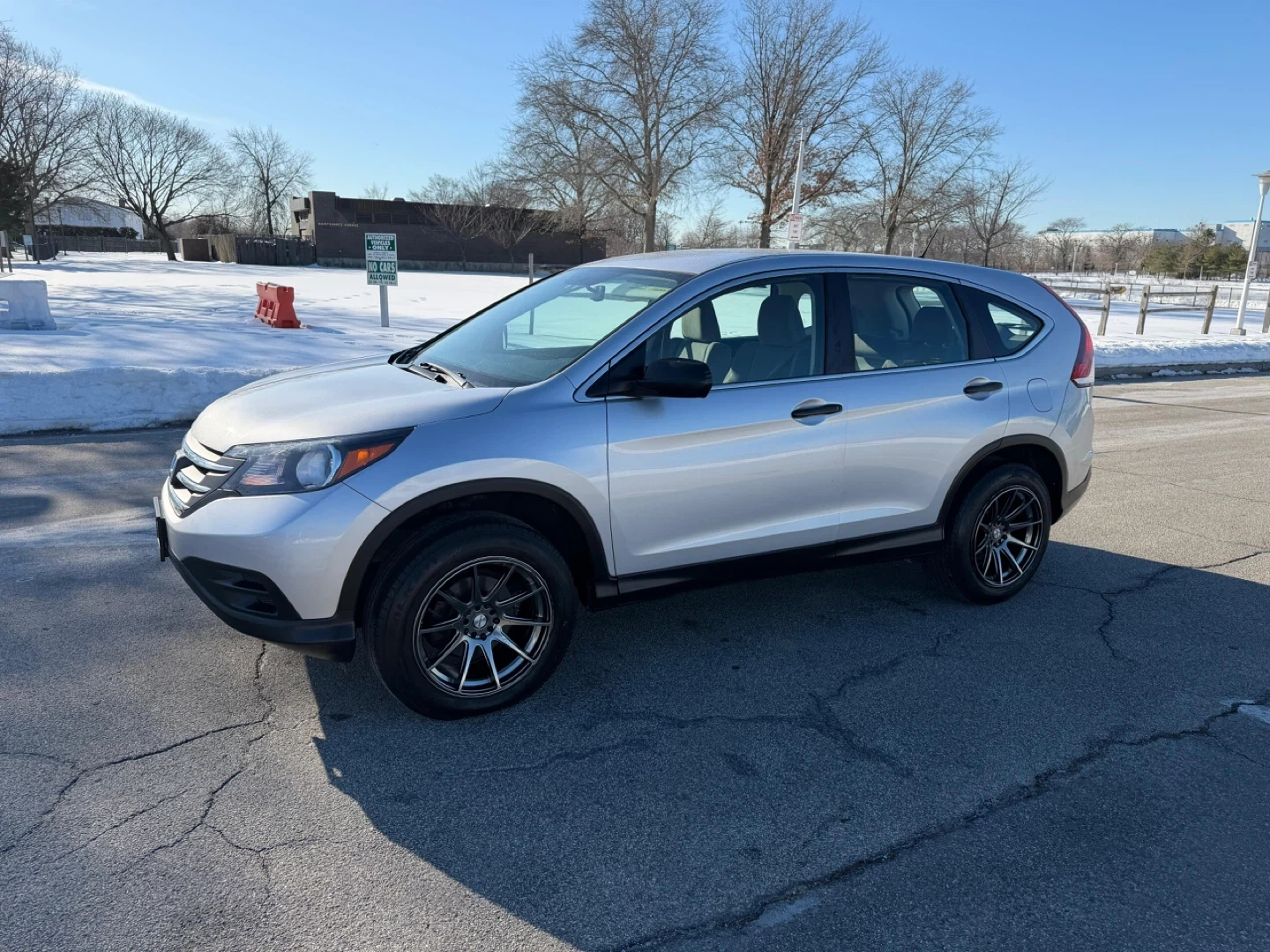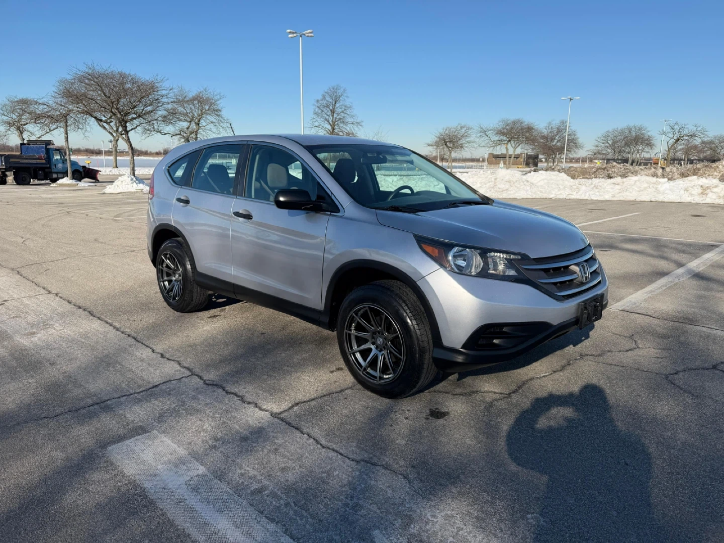 This silver 2014 Honda CR-V LX is a reliable SUV. It features a comfortable interior with cloth seats and has custom aftermarket wheels. This vehicle is ready for its next adventure!