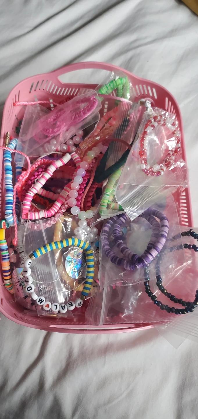 I have a bracelet business if u want to support me buy some bracelets glossybead_boutique is my tiktok drop a follow it took time to make these bracelets made with love and there's many more so text me if u want different ones I customize to your liking I don't only do beads but I also do the braided ones $8-$10 or more