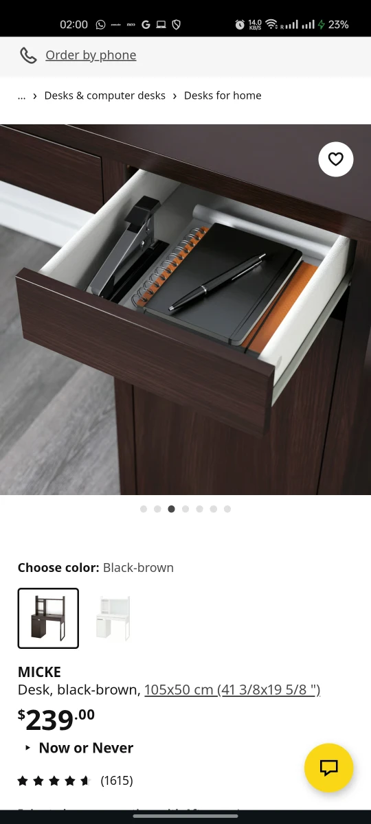 Selling my IKEA MICKE desk in black-brown. It’s a great, compact desk perfect for a home office or student setup. The desk is in good condition overall, with some minor chips here and there from normal use.