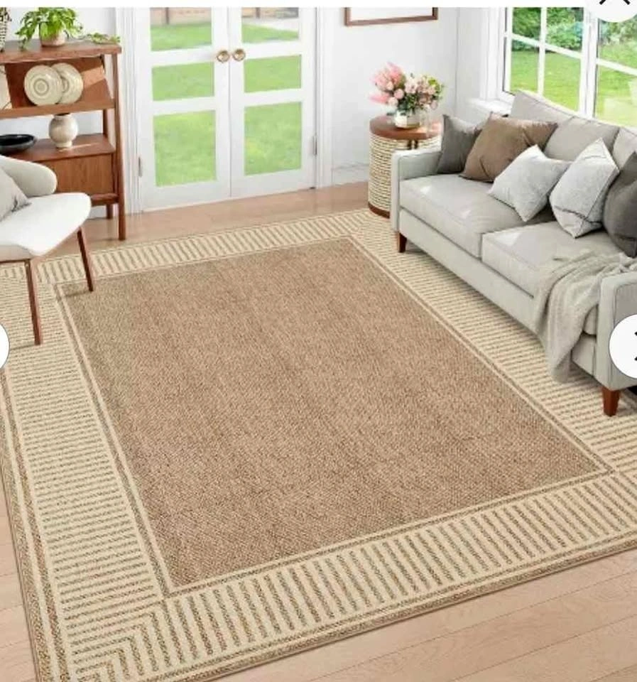 Brand new modern washable geometric bordered area rug. Soft, non-slip carpet suitable for dining rooms, bedrooms, and living rooms. From a pet-free and smoke-free home. Feel free to message if you have any questions!