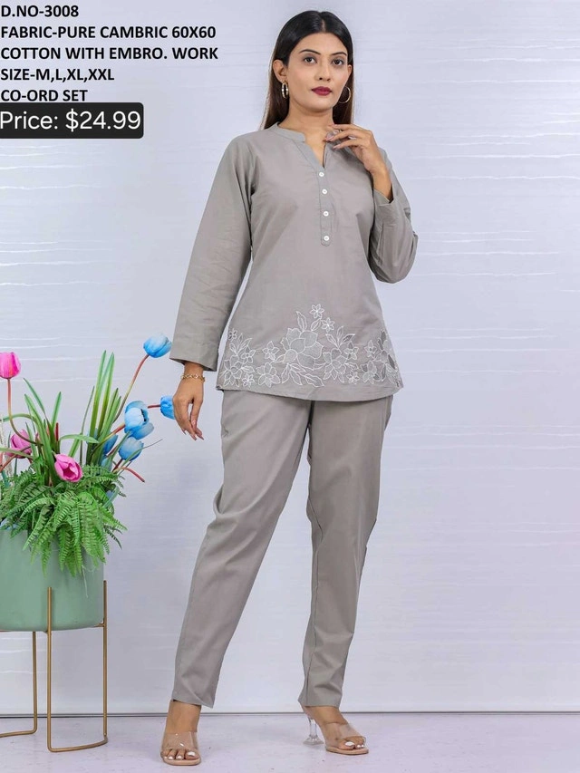 Beautiful Cord set with latest designs available in different sizes. Fabric: Pure cambric cotton. Sizes available: M, L, XL, XXL. Fabric is so comfortable and skin soothing. PERFECT FOR GIFTING AND OWN USE!! Hurry up before its gone!!!!! Please message me for more details.