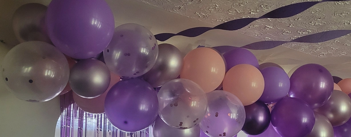 Balloon arches ready to be used! In various shades of purple, silver, and pink. Perfect for parties or decorations!