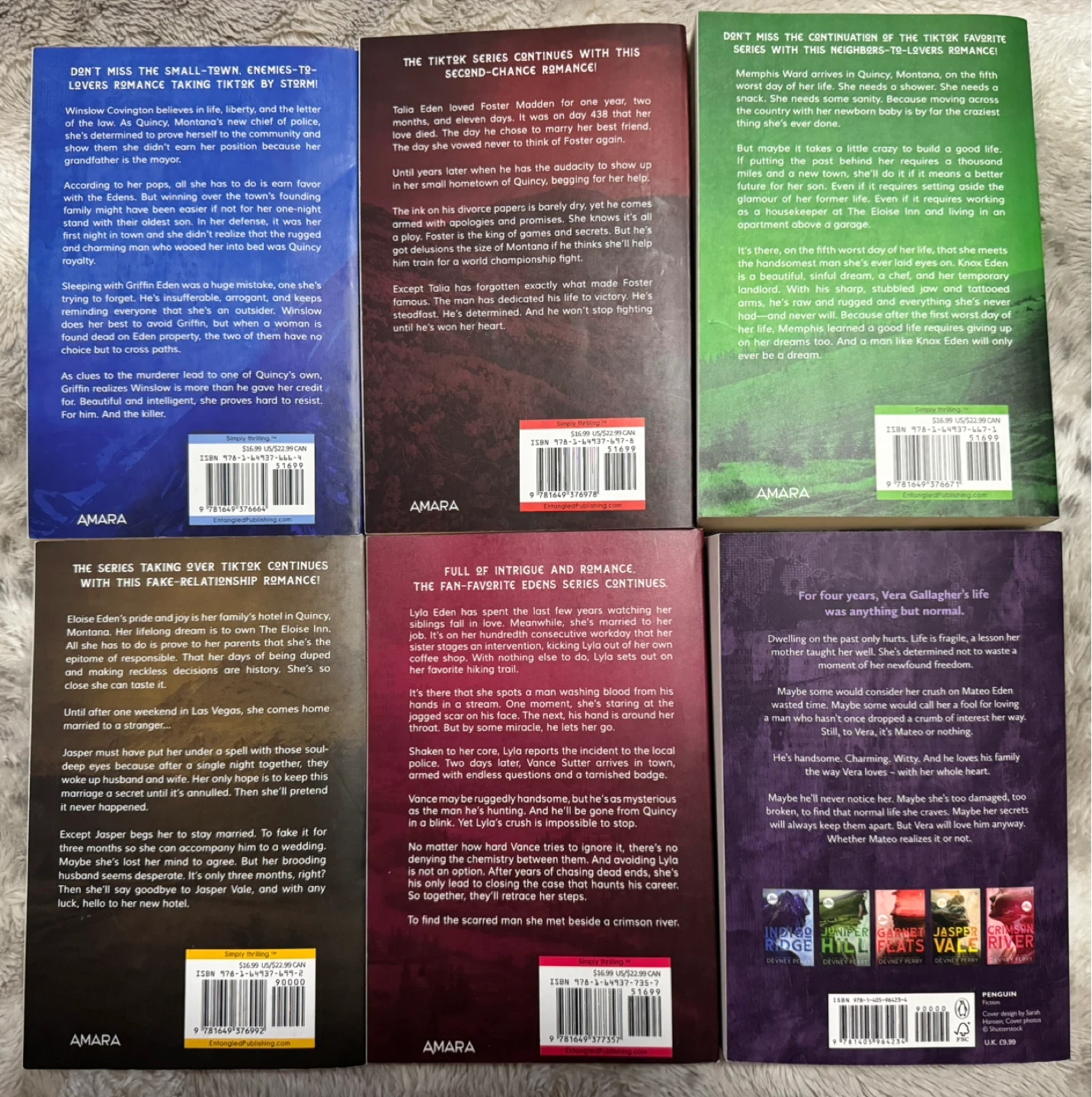 Six USA Today Bestselling romance novels from Devney Perry's The Edens series. Includes Indigo Ridge, Garnet Flats, Juniper Hill, Jasper Vale, Crimson River, and Sable Peak. These paperbacks offer bonus material inside.