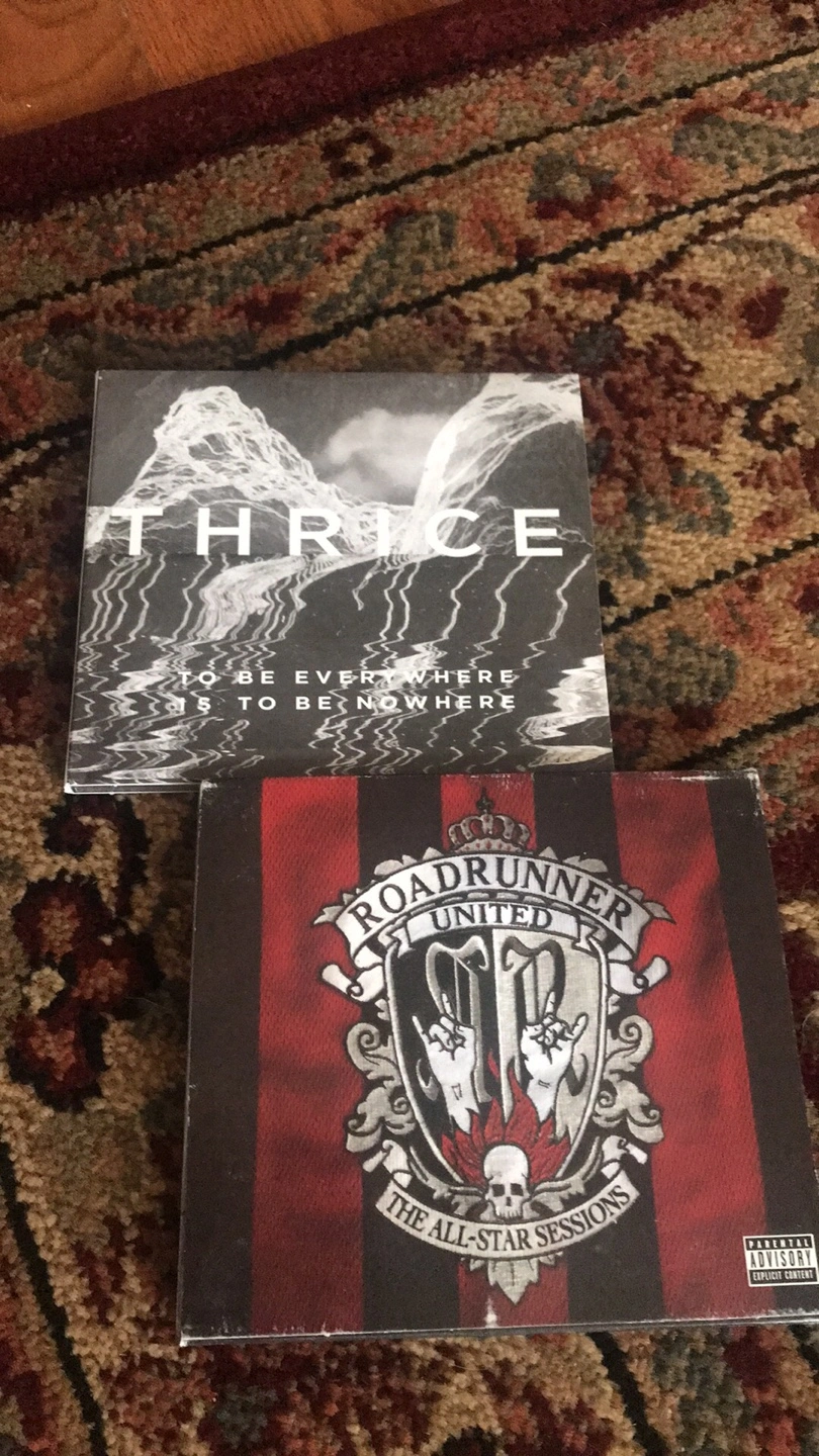 3$ each. Collection of rock and metal CDs including Thrice, The Streets, Every Time I Die, Say Anything, and Roadrunner United. Cases and discs are in good condition.