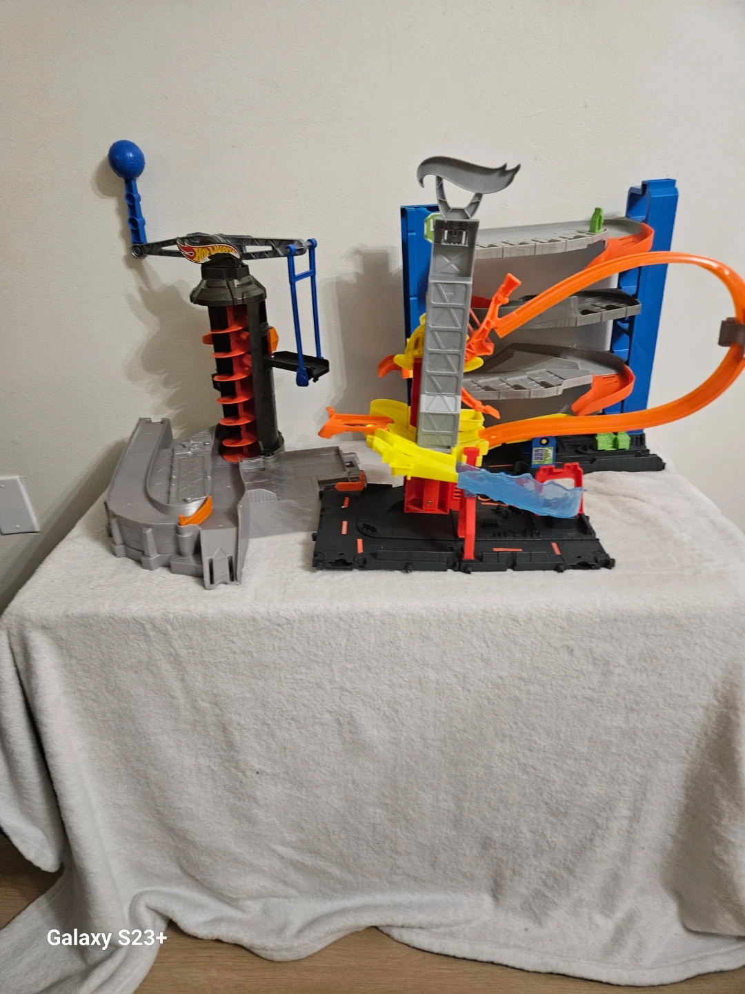 This multi-level Hot Wheels Ultimate Garage playset offers tons of racing fun! It's designed to hold and play with a large collection of Hot Wheels cars. Includes the main garage structure and various track pieces. Hours of imaginative play await!